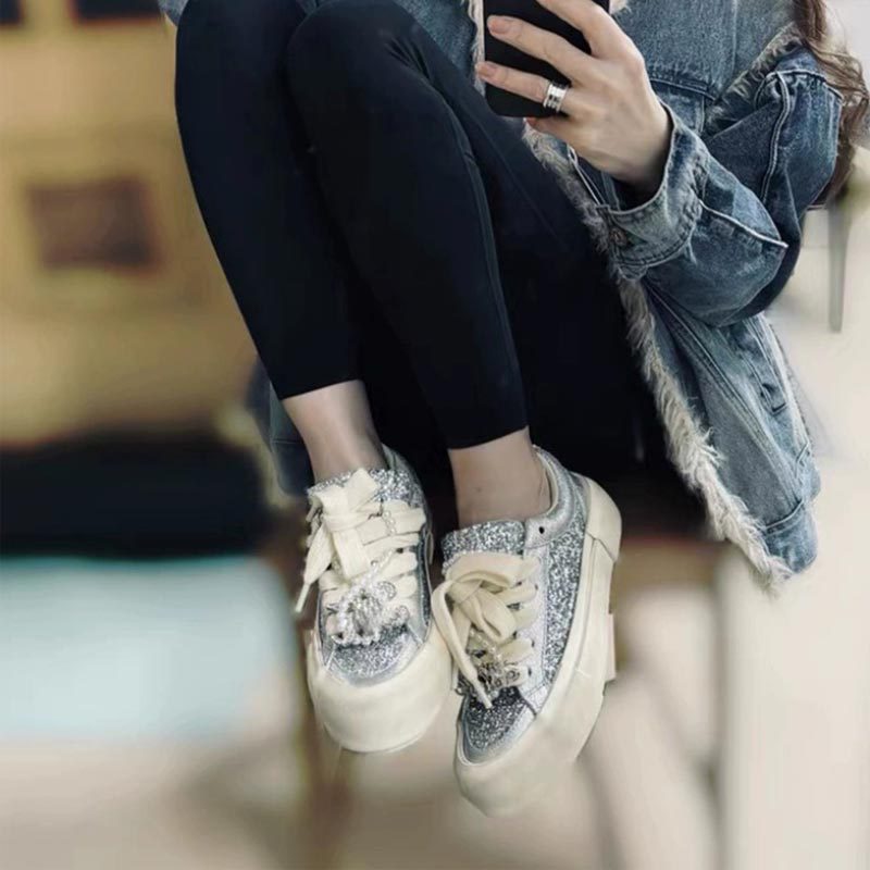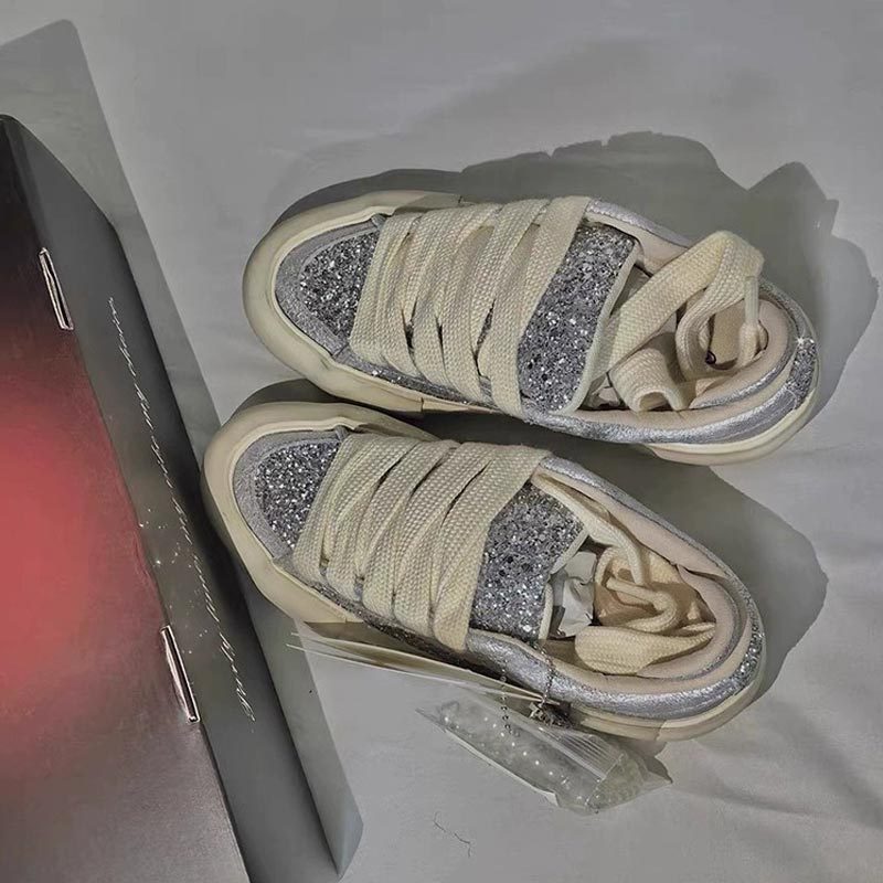 Spring Dong Jie's Sparkling Diamond Sequin Retro Sports Casual Shoes Sneakers Thick Sole Dirty Shoes Women's White Shoes