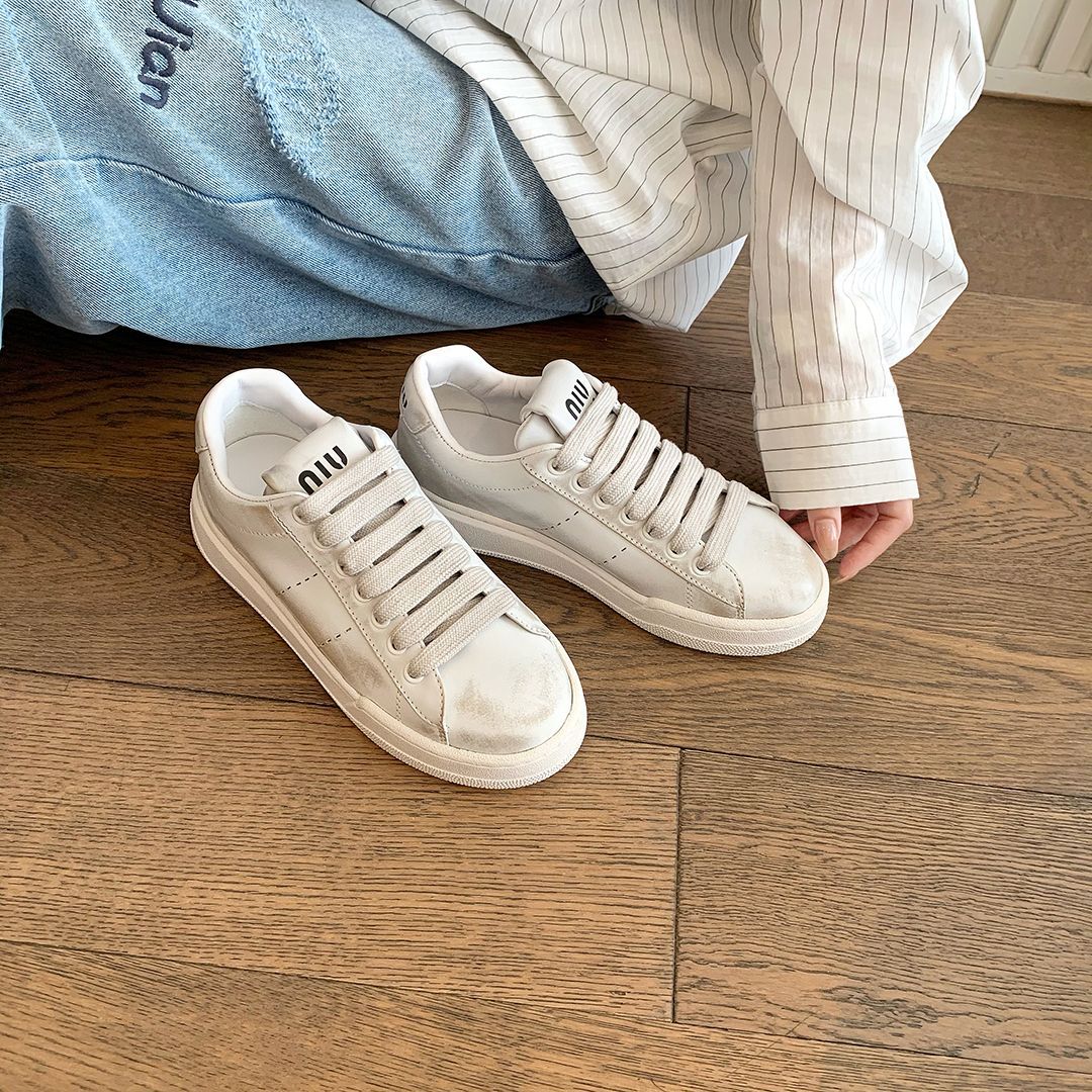 MIU's Old Thick-soled Dirty Shoes For Women,Casual Half-slip Sneakers,Miu Miu Sneakers,Lace-up Fashion,Internet Celebrity
