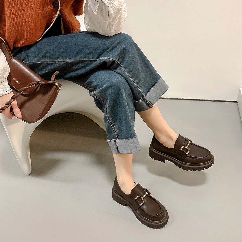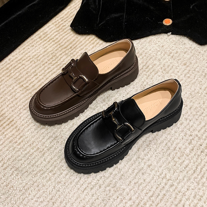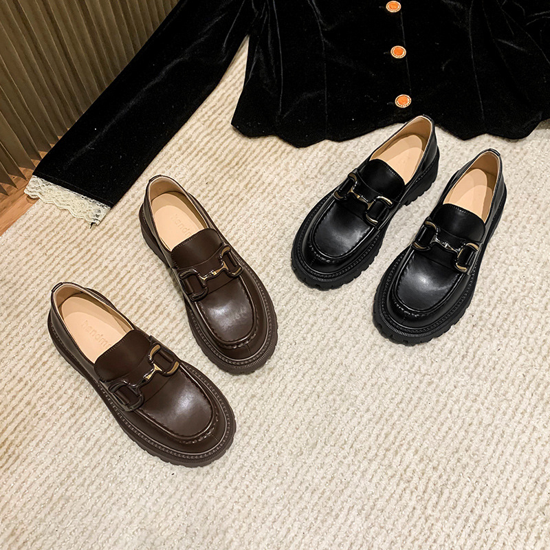 Low-top Genuine Leather British Style Small Leather Shoes Women's Loafers Casual Slip-on Thick-soled Breathable Single Shoes