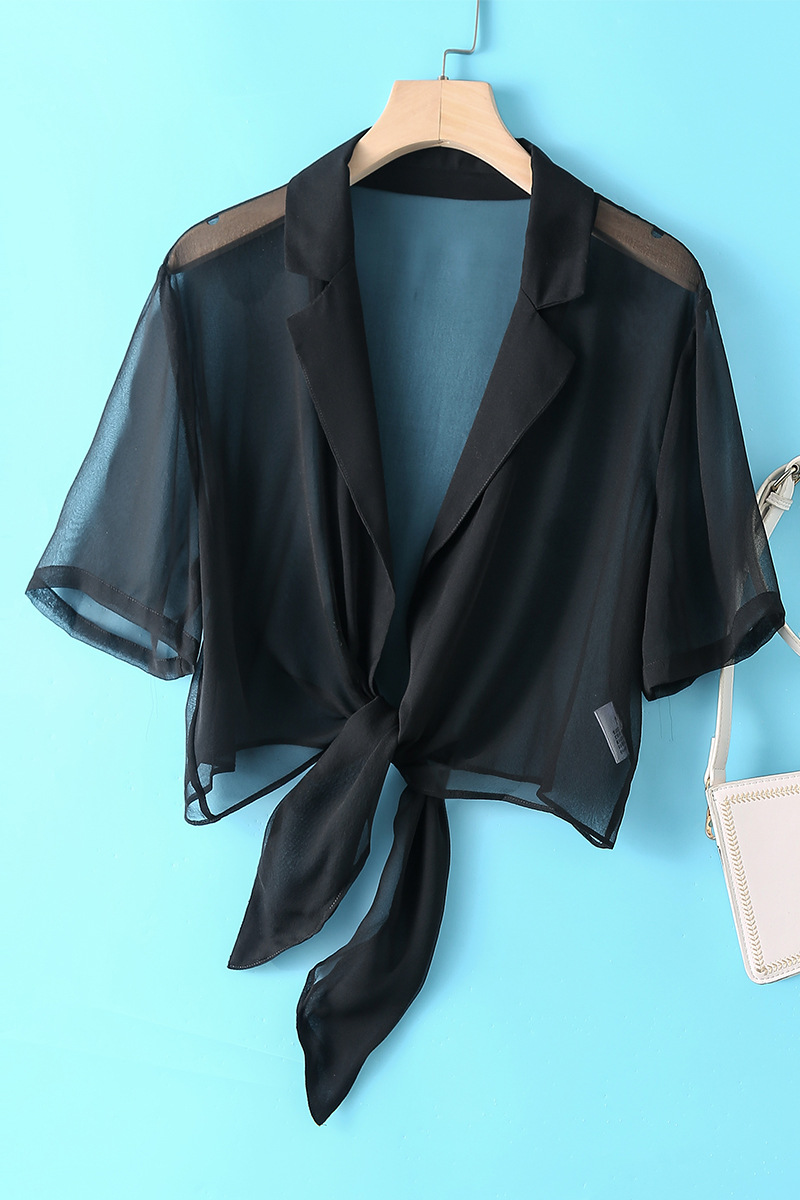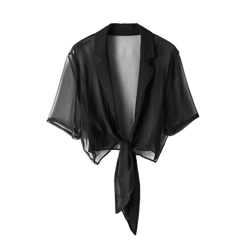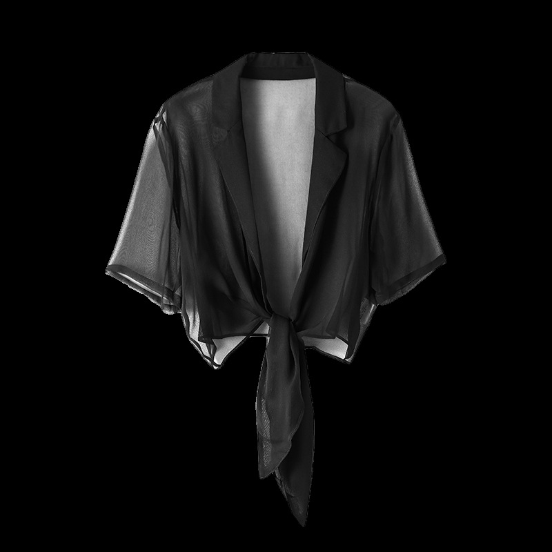 Silk Sunscreen Shawl Women's Summer Wear Style Mulberry Silk Thin Straps All-match Solid Color Suit Collar Jacket