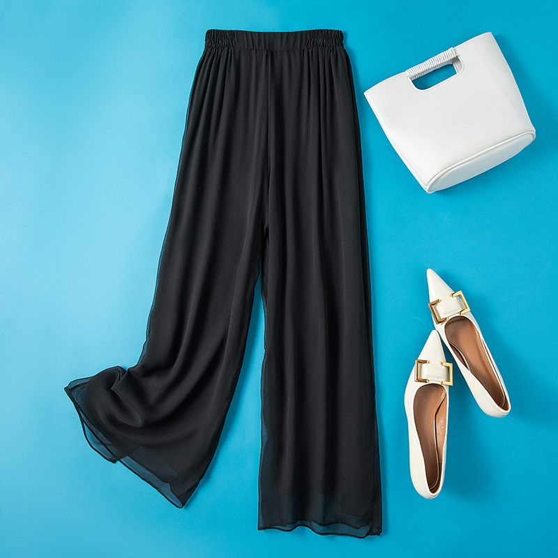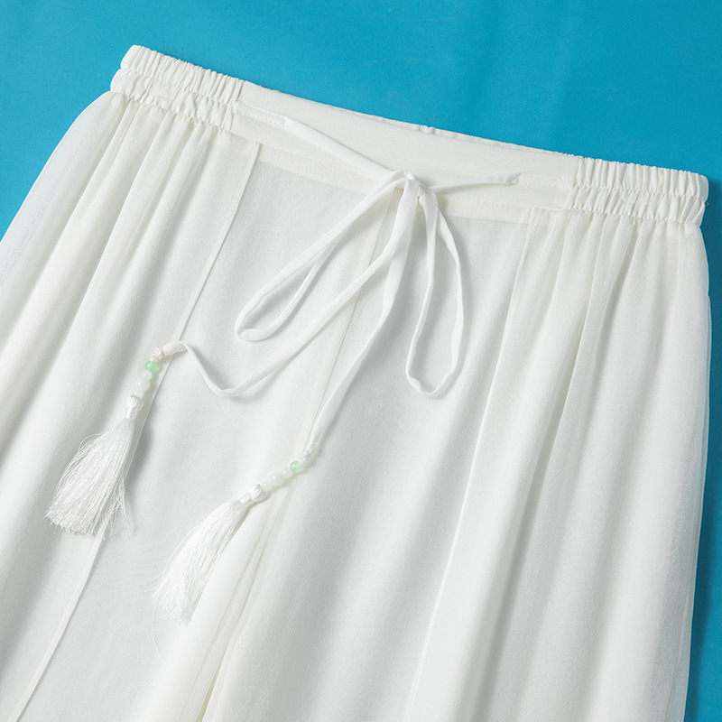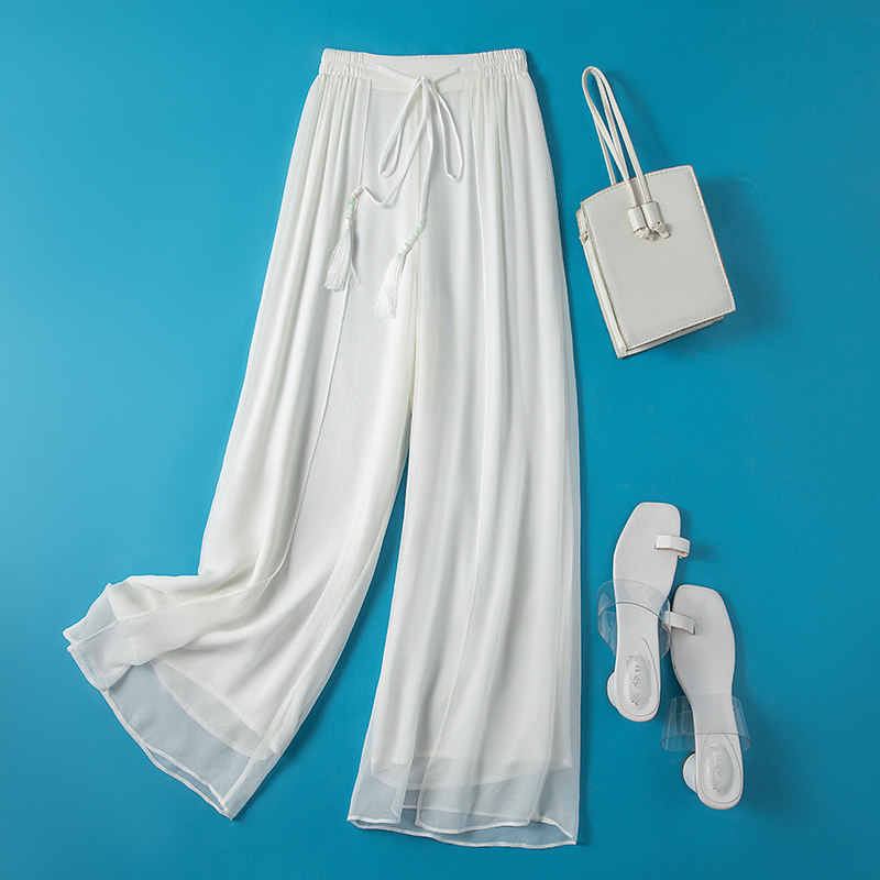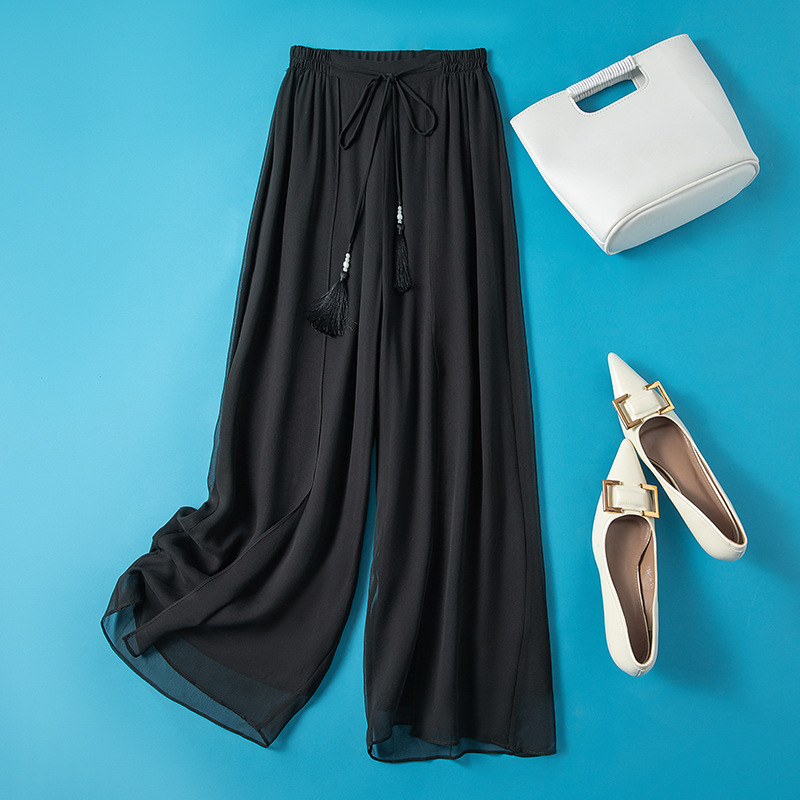 Thin Fairy Temperament Fashion All-match Nine-point Pants Net Celebrity Women Summer Elastic Waist Casual Pants Silk Tassel Wide-leg Pants
