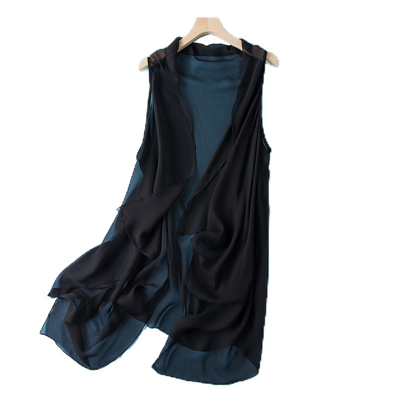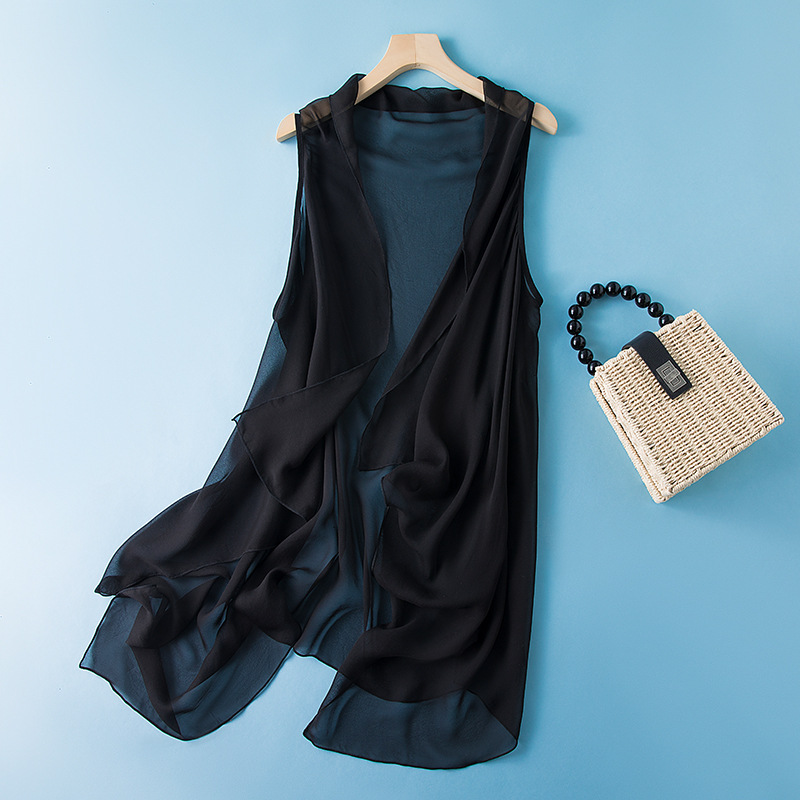 Mulberry Silk Loose Shawl Korean Style Small Waistcoat Summer Short Coat Silk Cardigan Top For Women