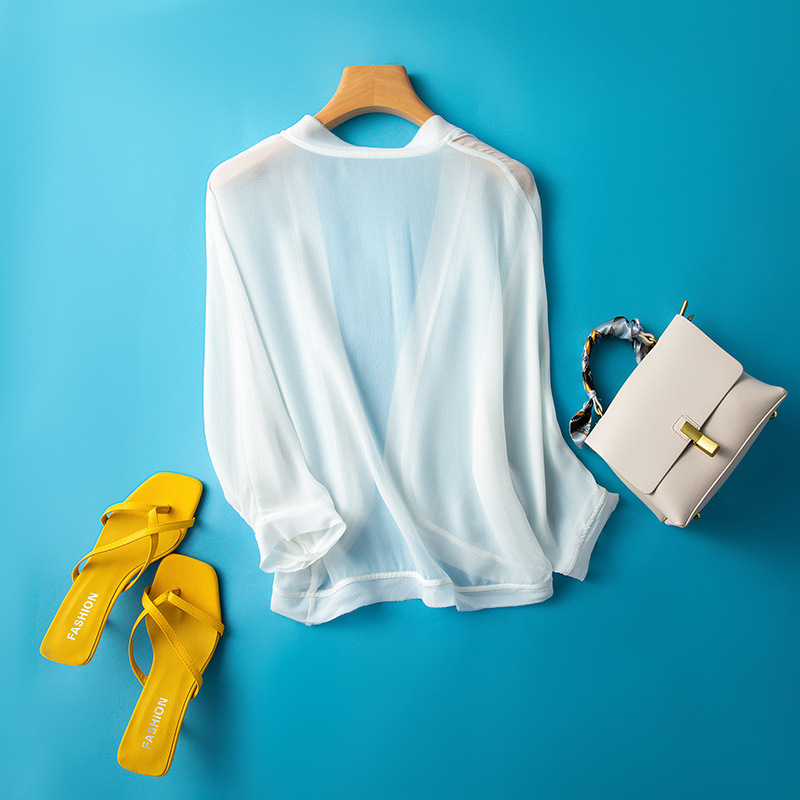 Summer Silk Outerwear Sun Protection Clothing Women's Short Cardigan Jacket Thin Small Shawl Waistcoat Solid Color Mulberry Silk