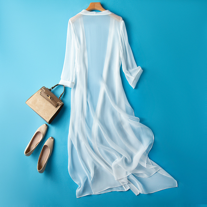 100%Silk Sun Protection Clothing For Women,Mid-length Mulberry Silk Shawl,Summer Sun Protection With Skirt And Jacket