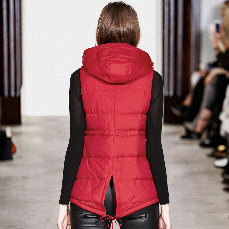 Autumn And Winter Style Light And Fluffy90%White Duck Down Jacket With Detachable Hood Solid Color Vest For Women
