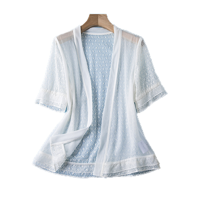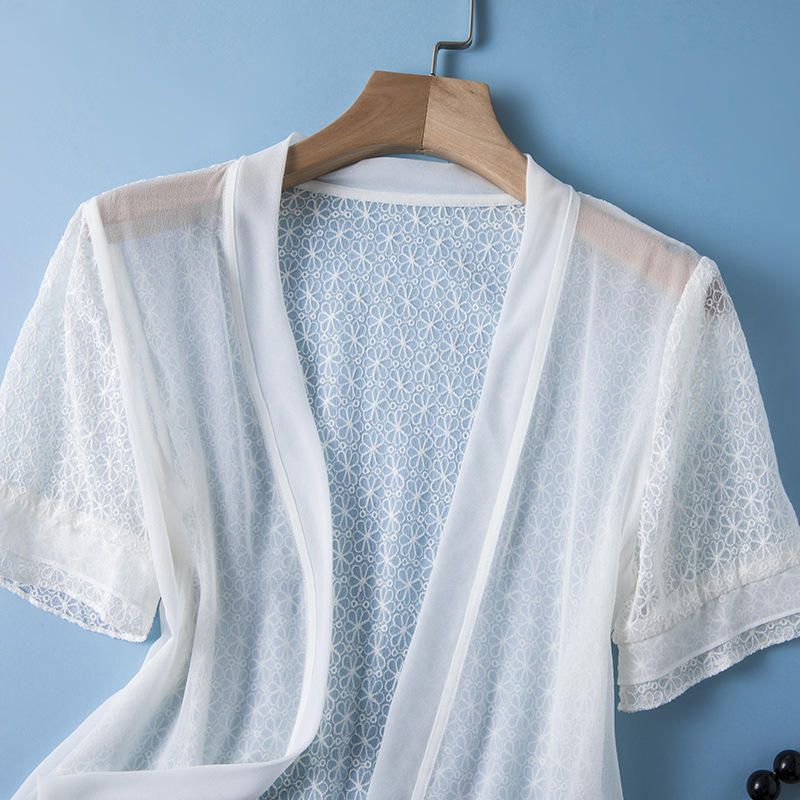 Embroidered Short Cardigan Silk Cape Outer Wear Summer Thin Sunscreen Cardigan Mulberry Silk Jacket Top