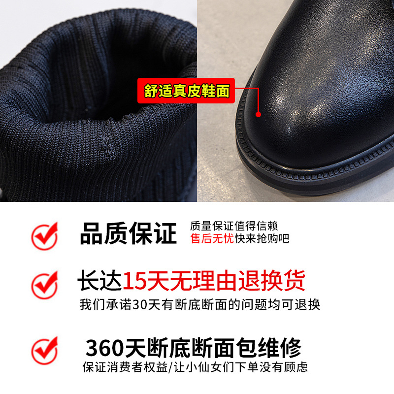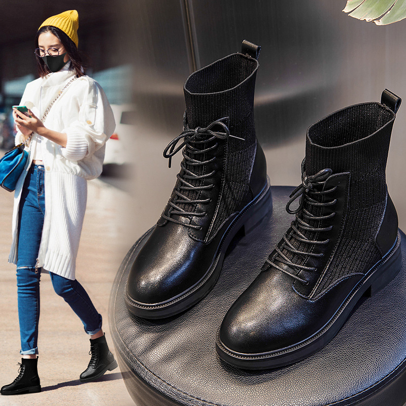 Genuine Leather Martin Boots Autumn Leather Boots Women's Mid-calf Casual Thick Heel Short Boots Women's Socks Thick-soled Women's Boots