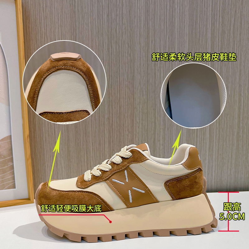 Absorbent Sole Genuine Leather Forrest Shoes Women's Spring Thick-Soled Sports Shoes Casual Versatile Dad Shoes Women's Fashion