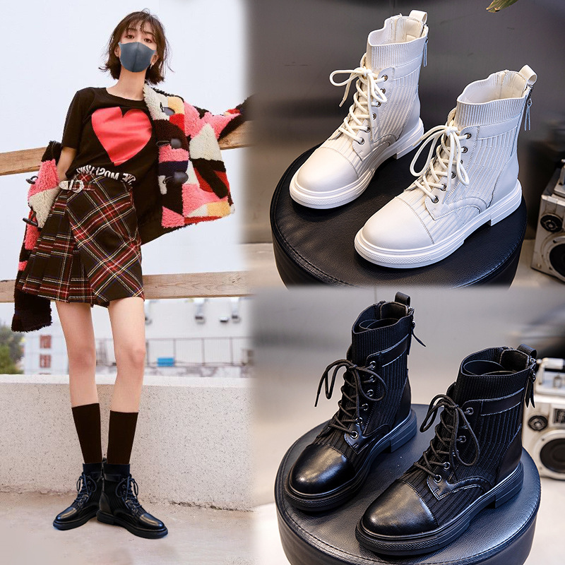 Martin Boots For Women Autumn And Winter British Style Thick-soled Socks Short Boots Women's Mid-calf Retro Genuine Leather Women's Shoes