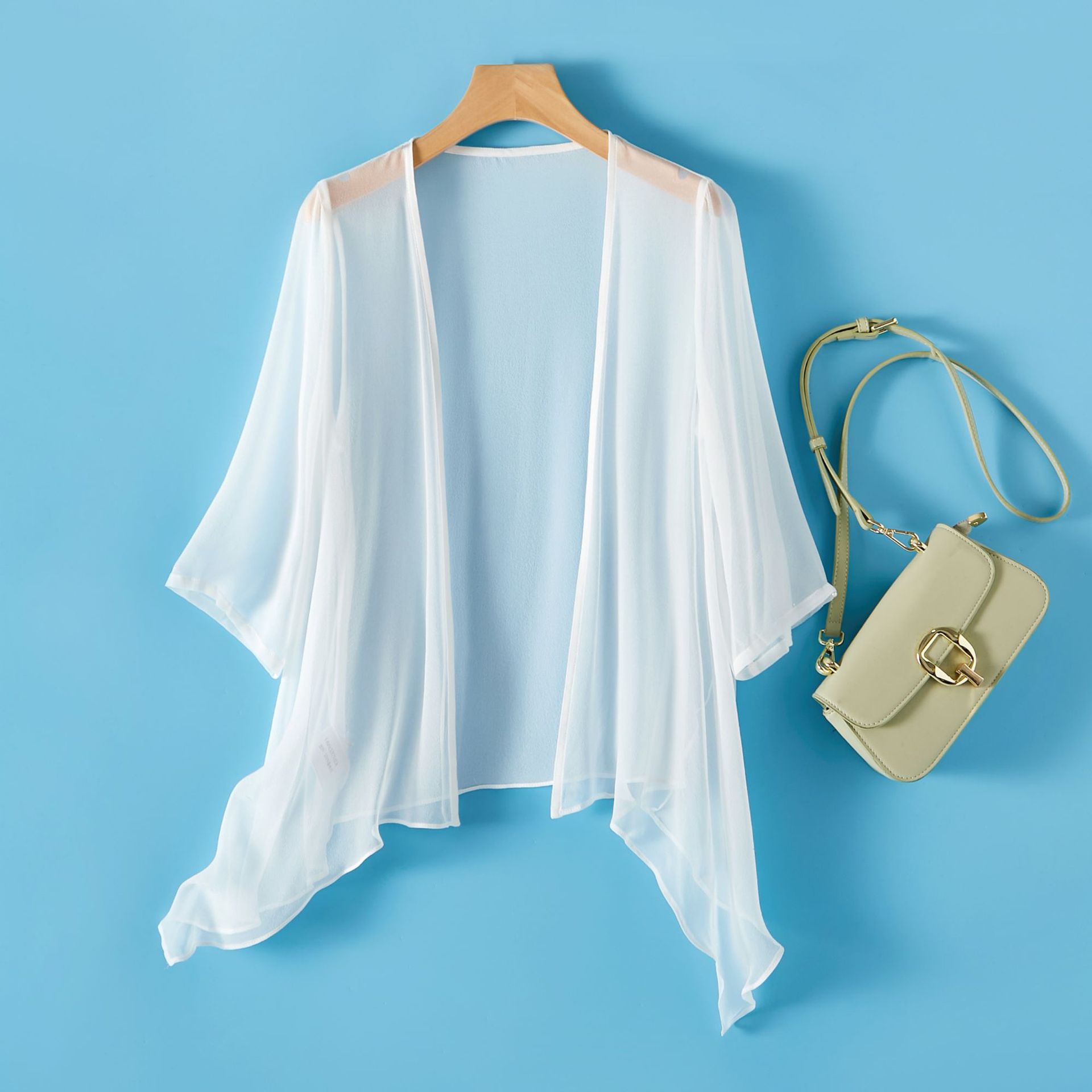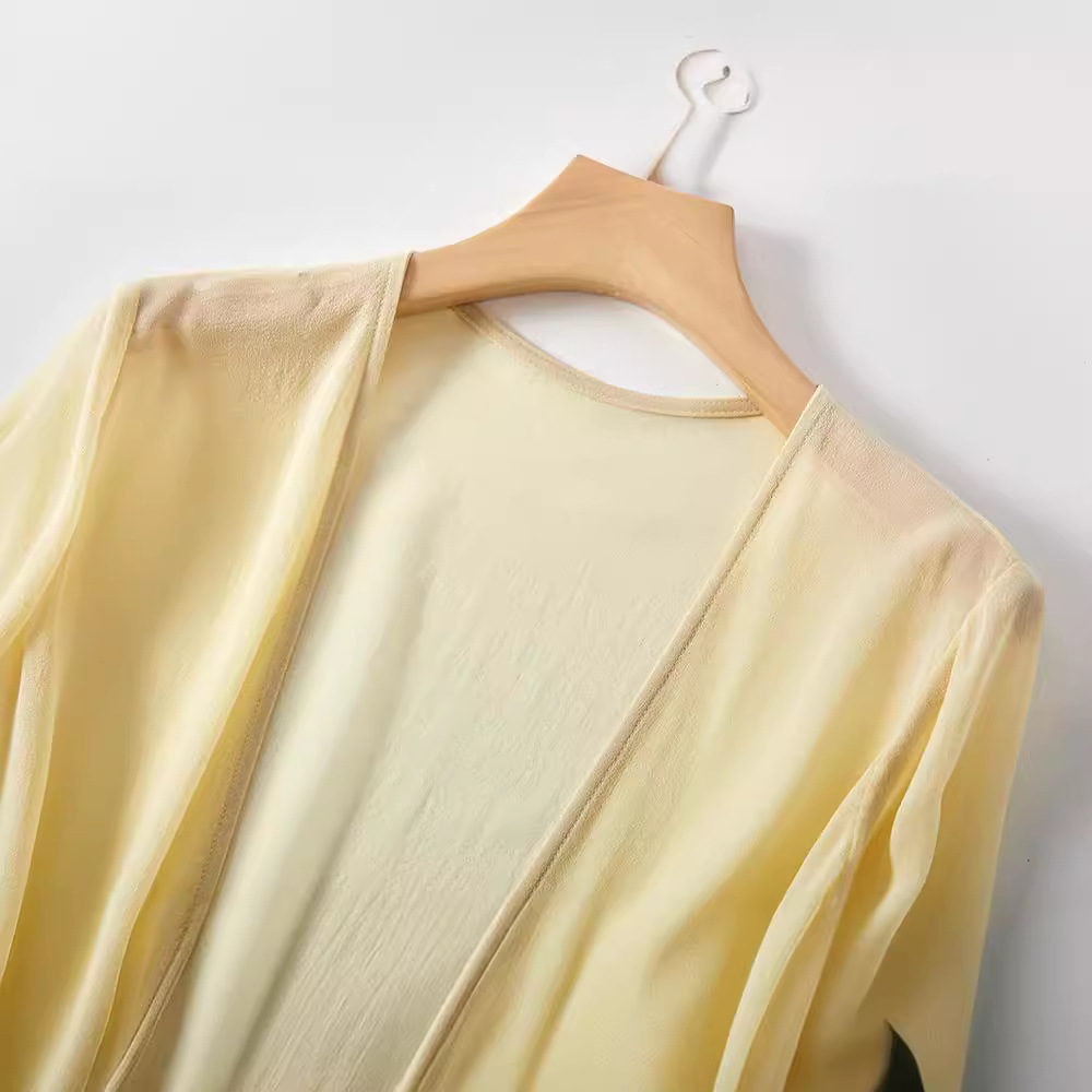 Mulberry Silk Summer Coat Solid Color Shawl Silk Top Women's Cardigan Thin Sun Protection Outer Wear28059