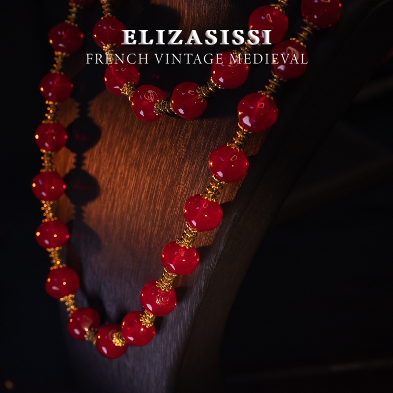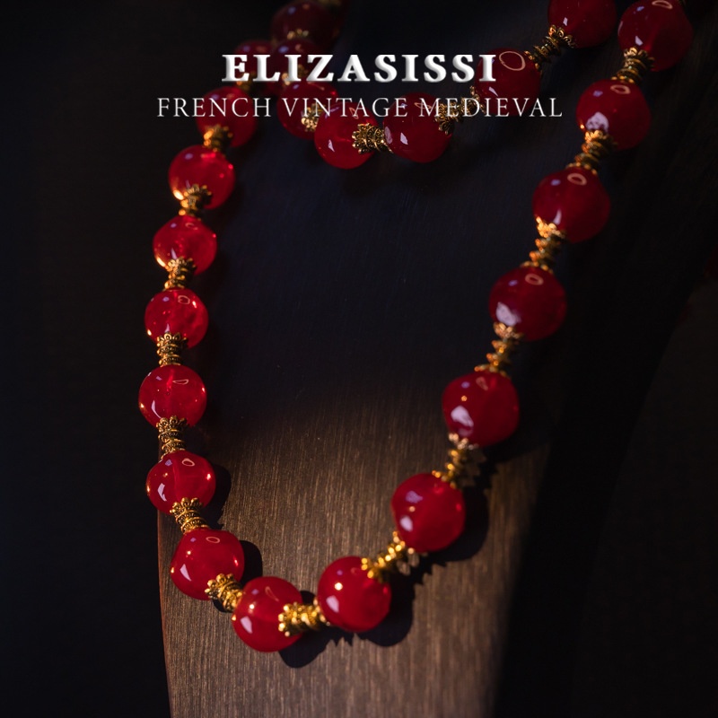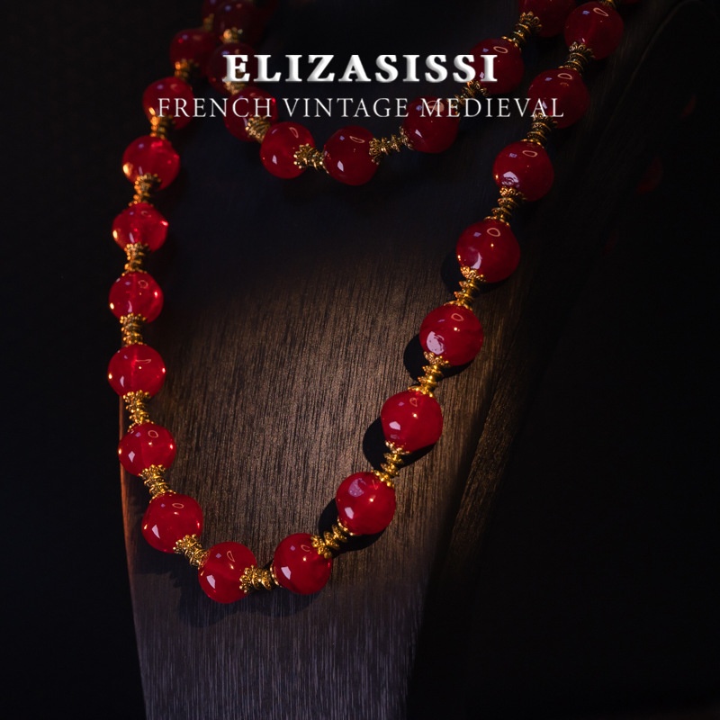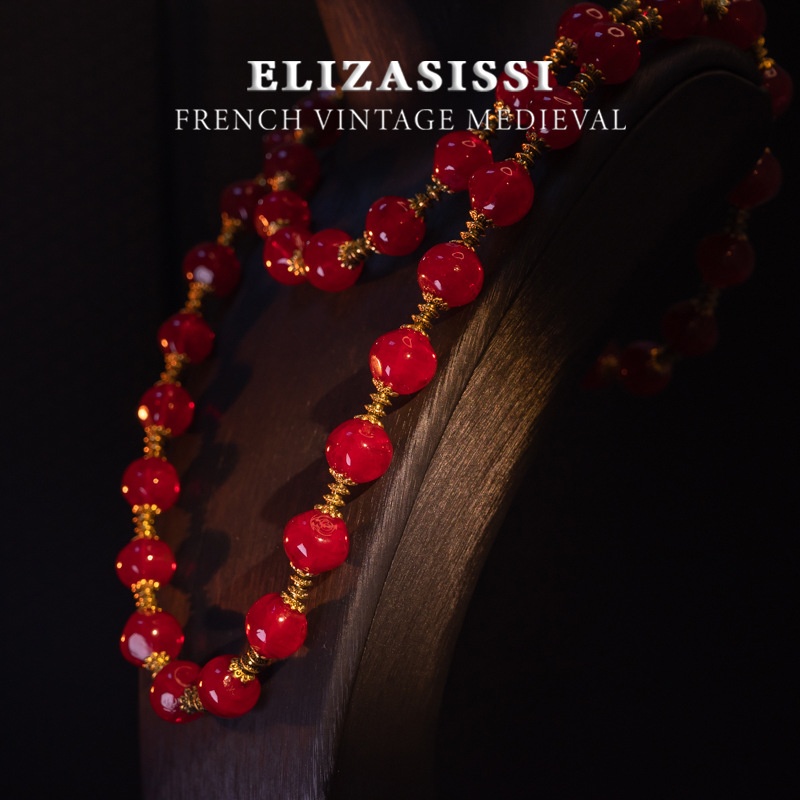 Qingdao Medieval Vintage Red Agate Round Beads Retro High Quality Versatile Autumn And Winter Sweater Chain Long And Short Necklace