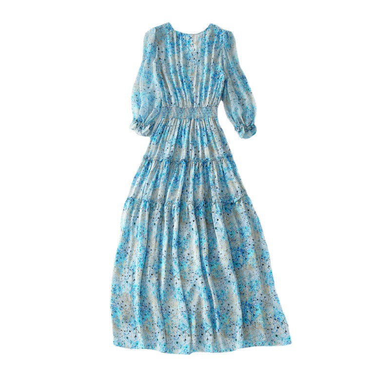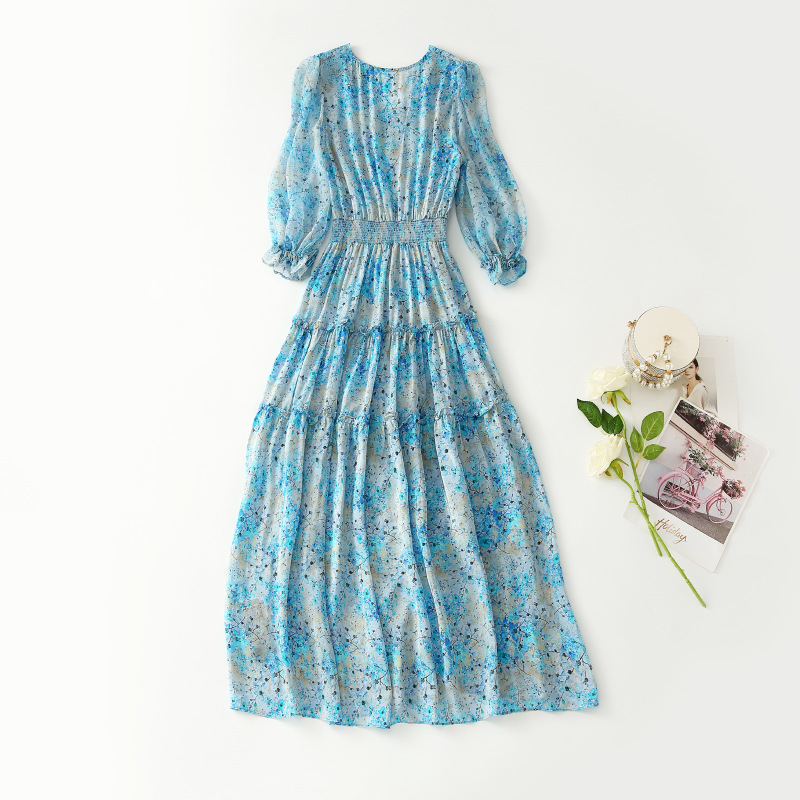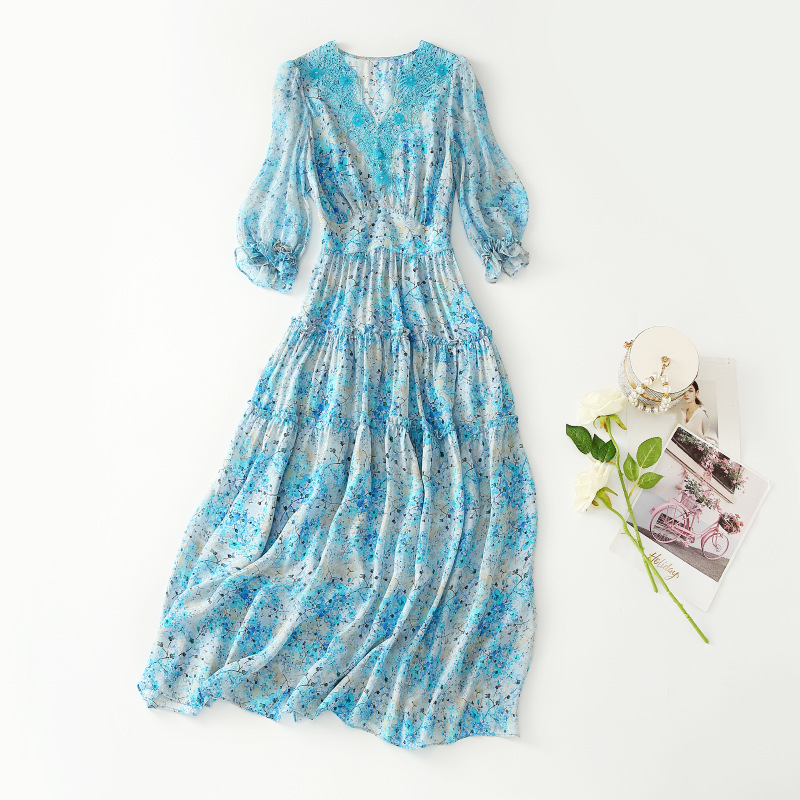 Shenzhen Silk Dress Women Spring Luxury Brand Temperament Floral Dress Mulberry Silk Slim Long Skirt