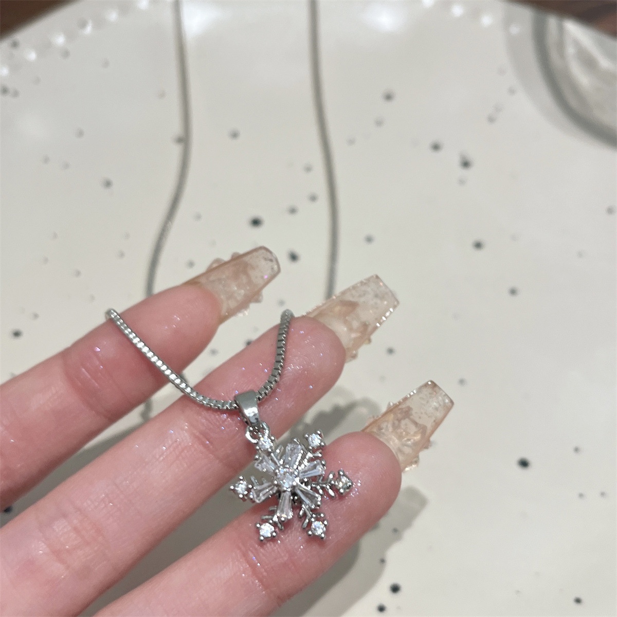 Unique Design Rotating Snowflake Necklace Women's Sweater Chain High-end Autumn And Winter Light Luxury Niche Clavicle