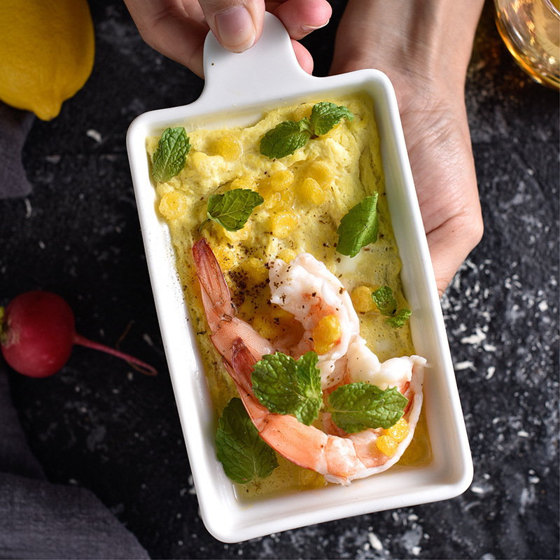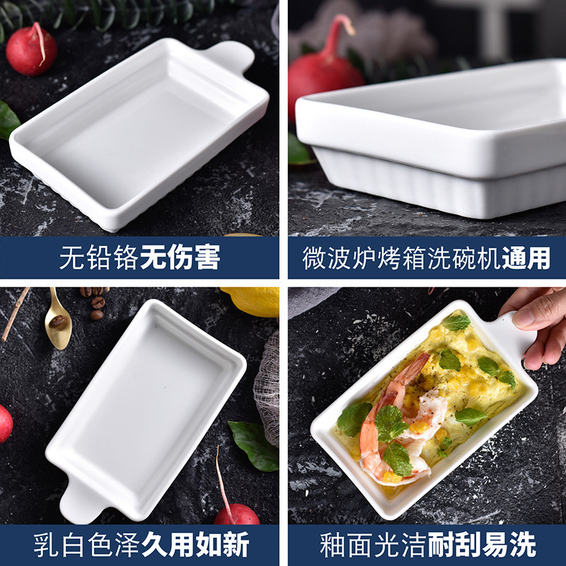 Single Handle Ceramic Baking Tray Cheese Baked Rice Rectangular Plate Tableware Style Shallow Baking French Dessert Plate Can Be Made
