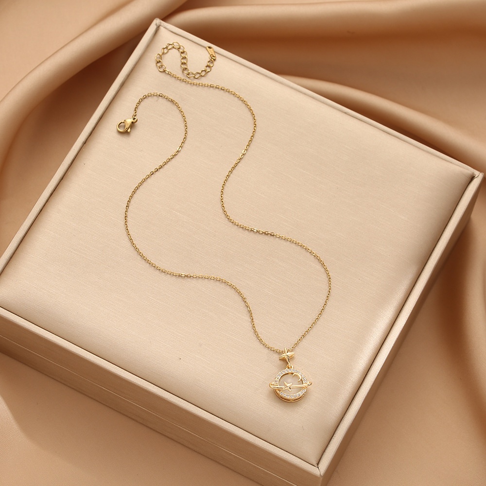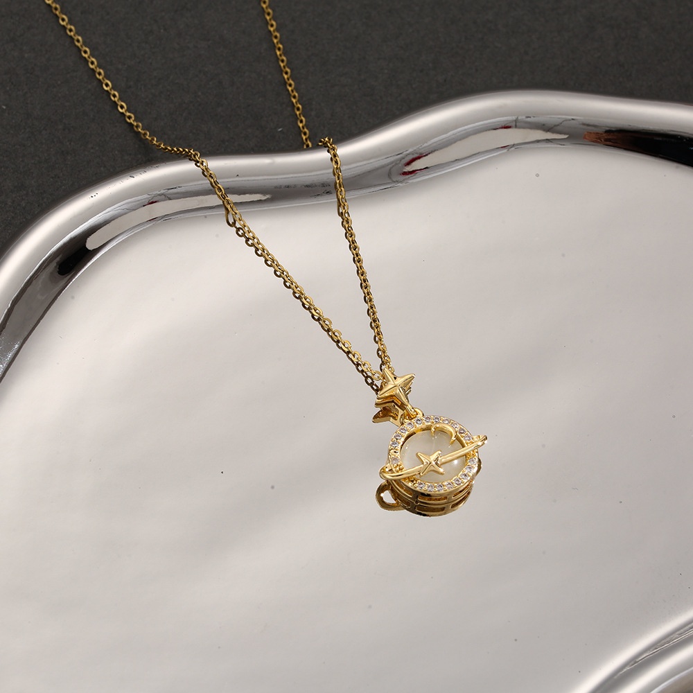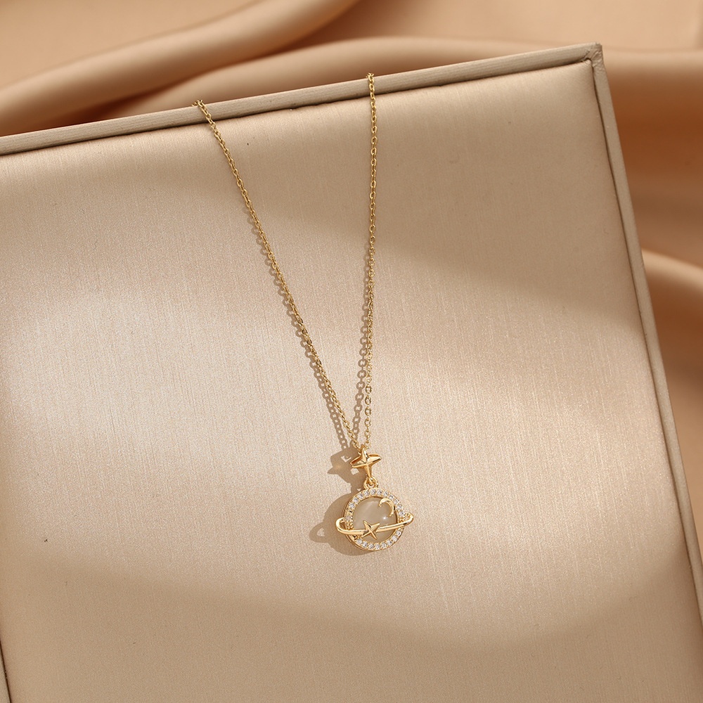 Cat's Eye Necklace Women's Autumn And Winter Light Luxury Niche High-end Non-fading Clavicle Chain Planet Pendant