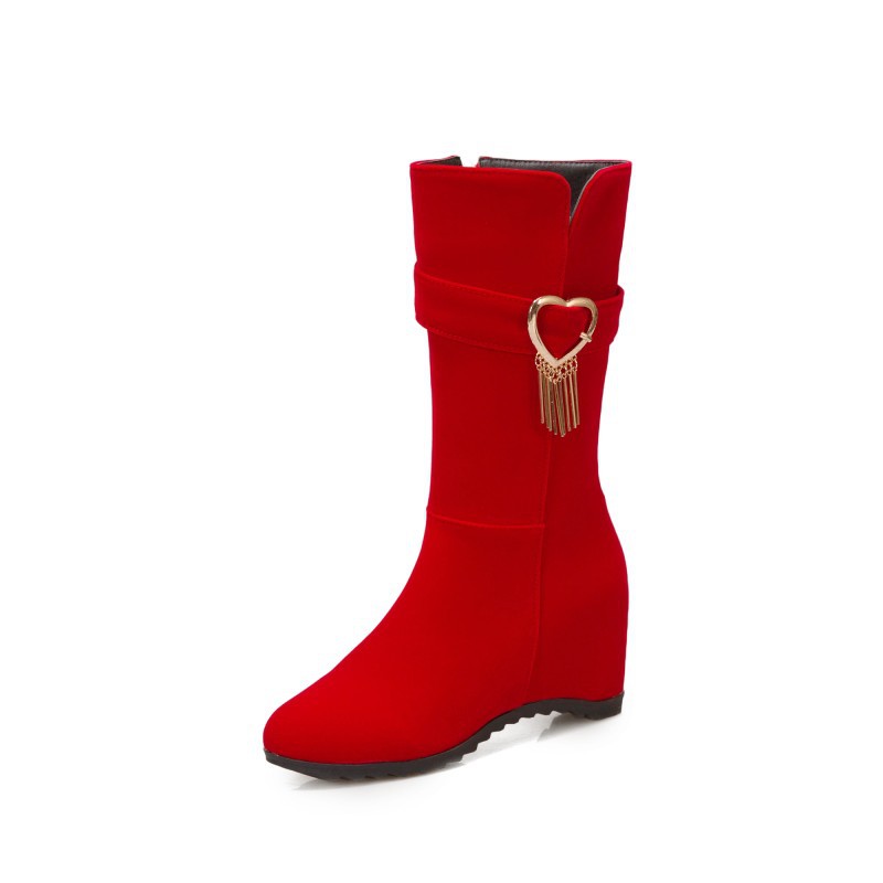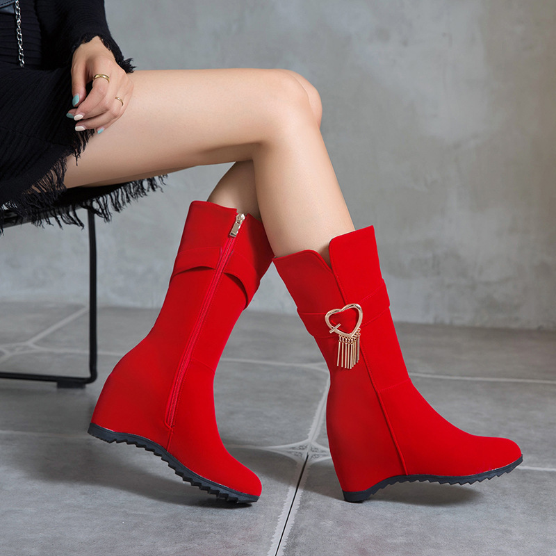 Large Size Red Women's Boots Autumn And Winter Korean Style Wedge Heels With Mid-calf Boots Women's Wedding Boots Bridal Boots4854