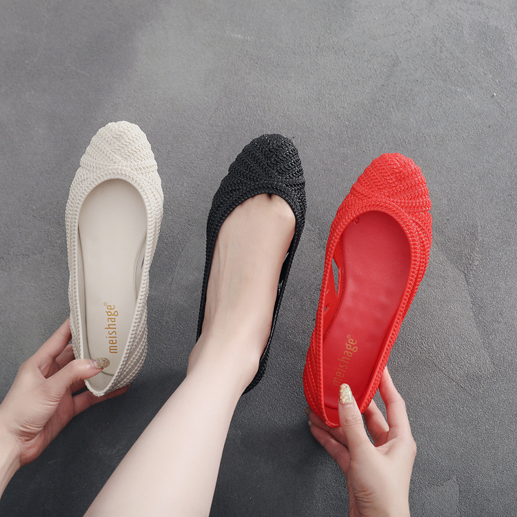 Shallow Mouth Single Shoes For Women,Summer Casual Sandals,Hollow Breathable Flat-soled Beanie Shoes,Slip-on Slip-on Shoes