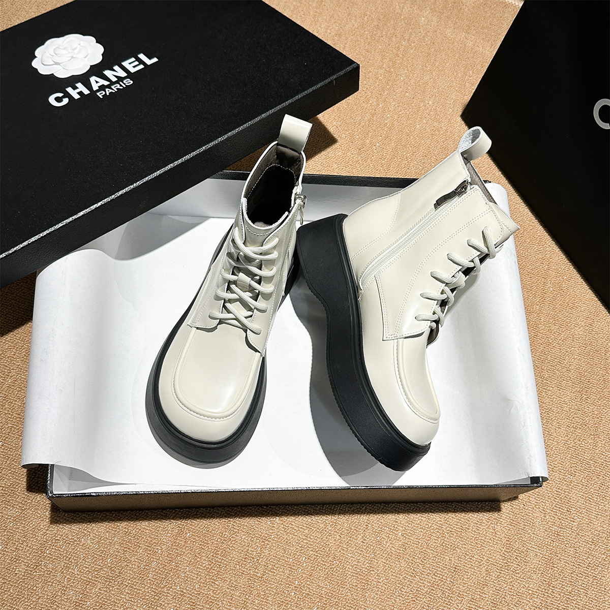 Xingguangfang Side Zipper Genuine Leather Martin Boots For Women Autumn And Winter College Style Thick Sole Heightening Fashion Short Boots For Women