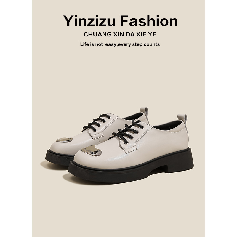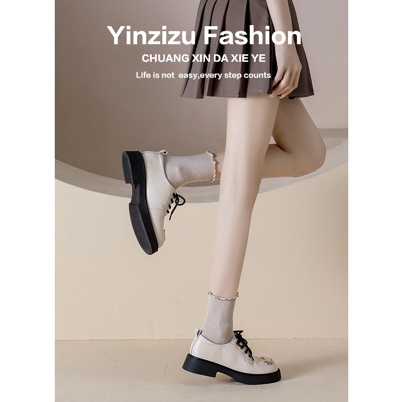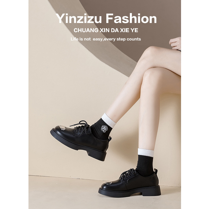 Genuine Leather Small Leather Shoes For Women Spring And Autumny Lace-up British Style Small Leather Shoes Black Thick Sole Casual Loafers