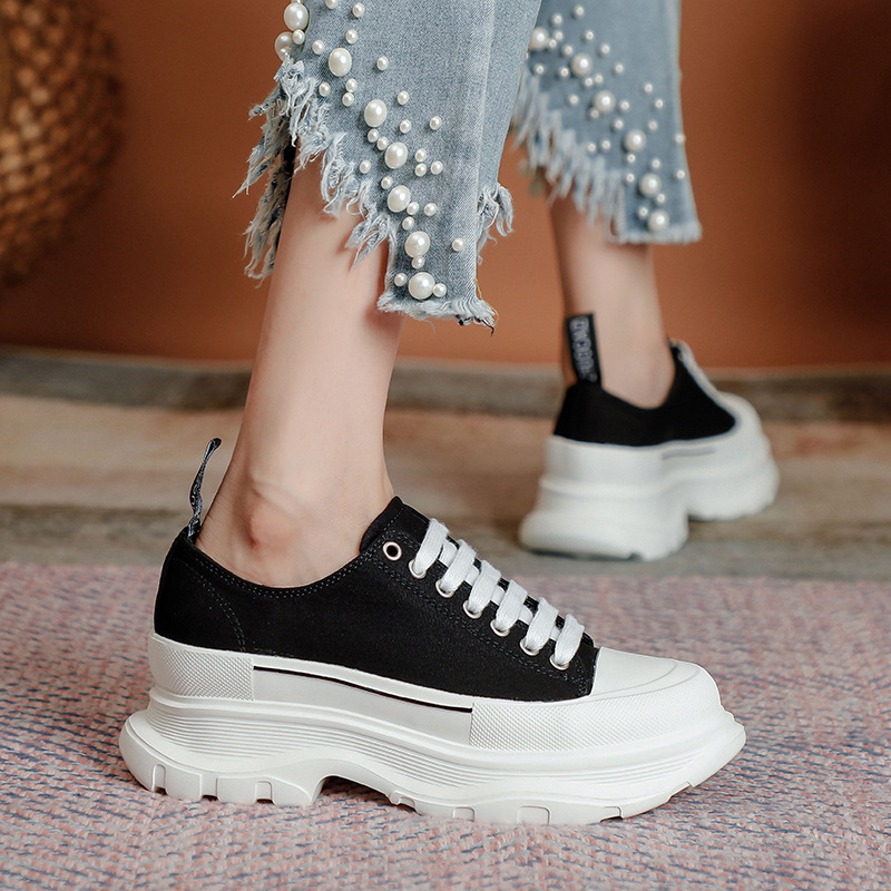 Biscuit Shoes Thick-soled White Shoes For Women With Laces Spring And Autumn Style Multi-match Fashion Sports And Leisure Shoes To Increase The