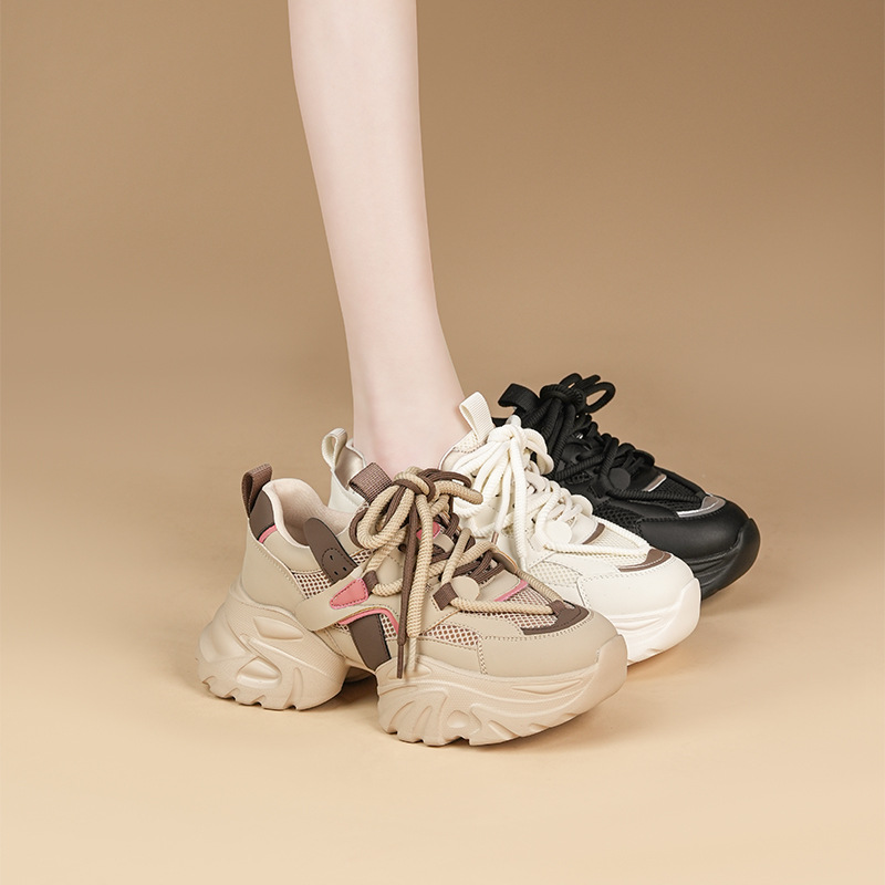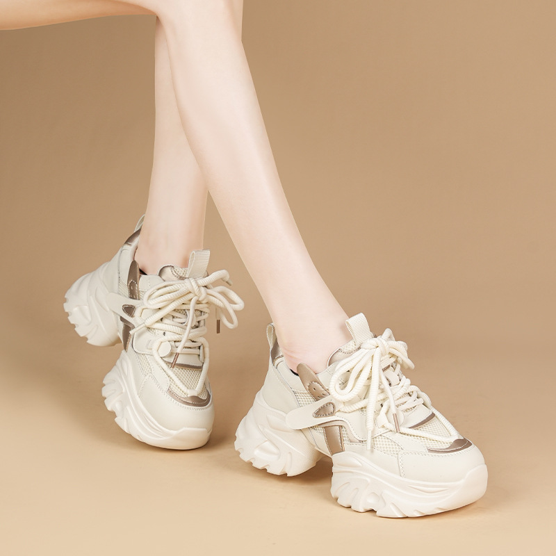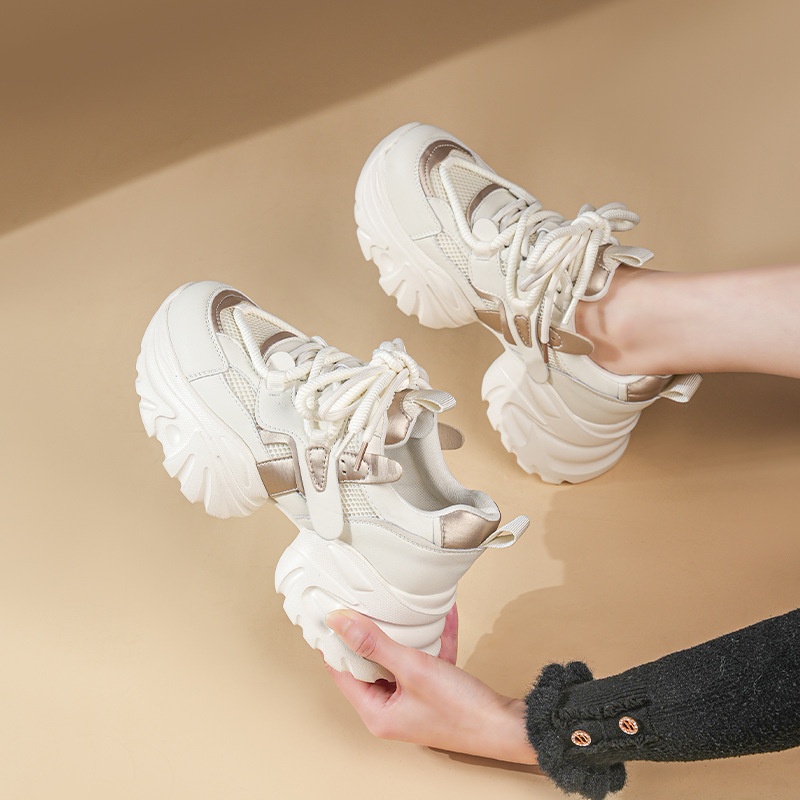 Spring Thick-soled Dad Shoes For Women,Super Hot And Versatile,Color-blocked,Casual Sneakers,White Shoes,y