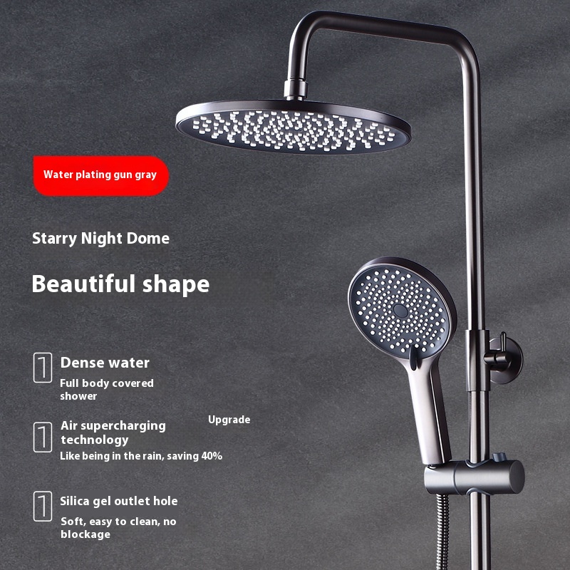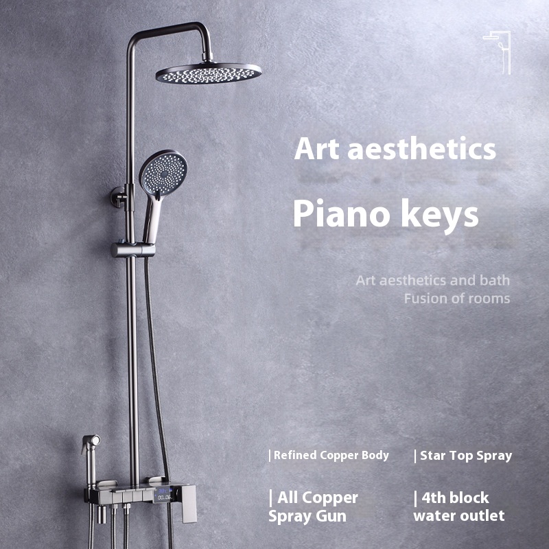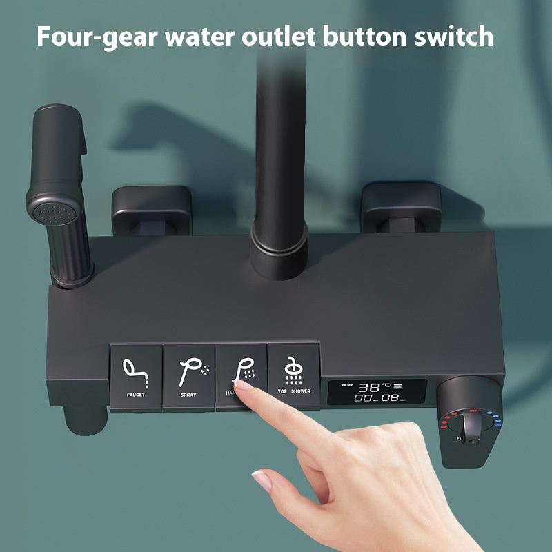 Water-plated Gray Piano Button Four-speed Thermostatic Digital Display Shower Faucet Set Booster Mixing Valve Shower