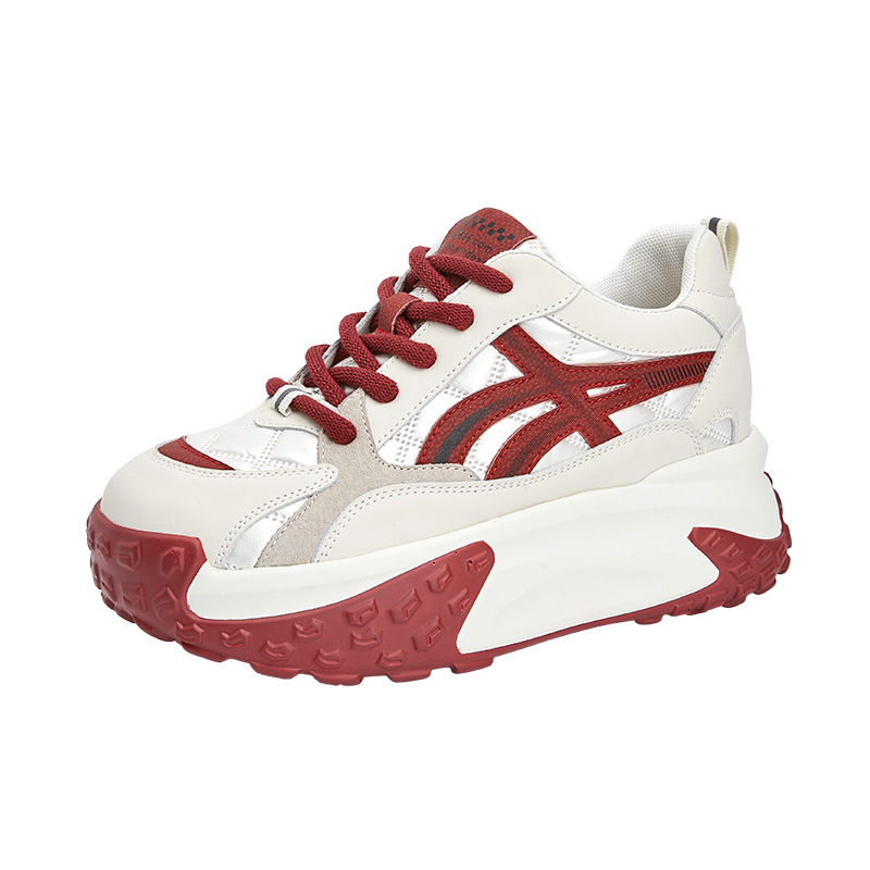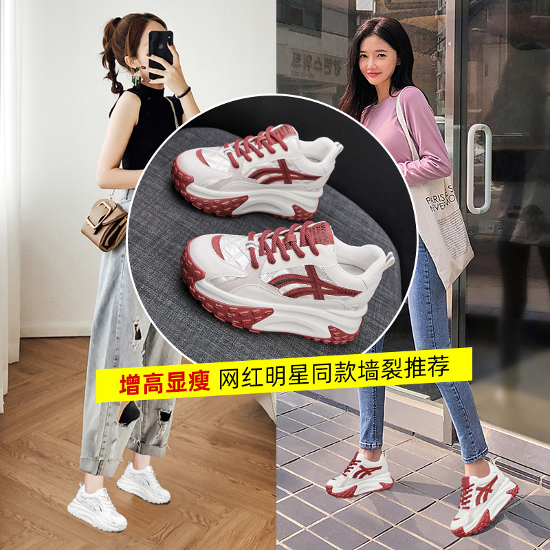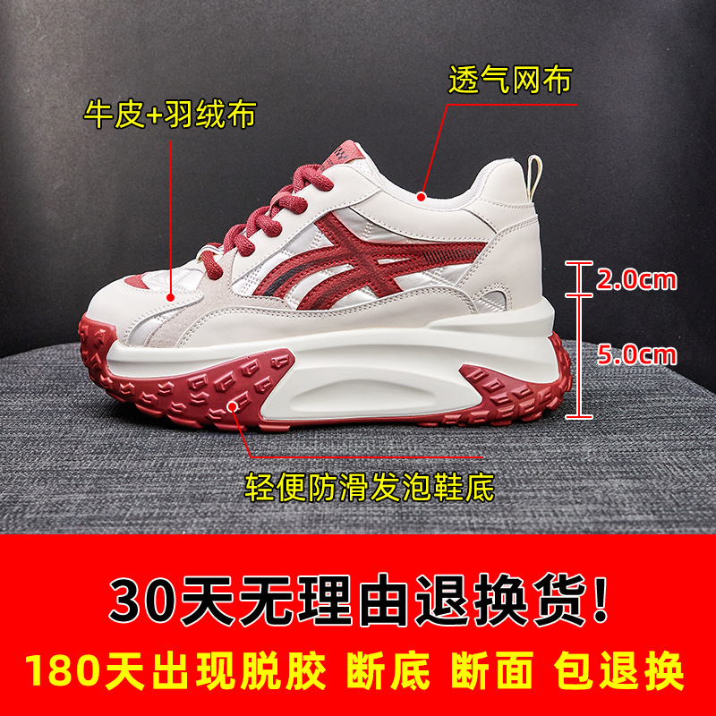 Genuine Leather Dad Shoes For Women Spring And Autumn Versatile Forrest Gump Shoes Retro Inner Heightening Thick-soled Casual Sports Shoes