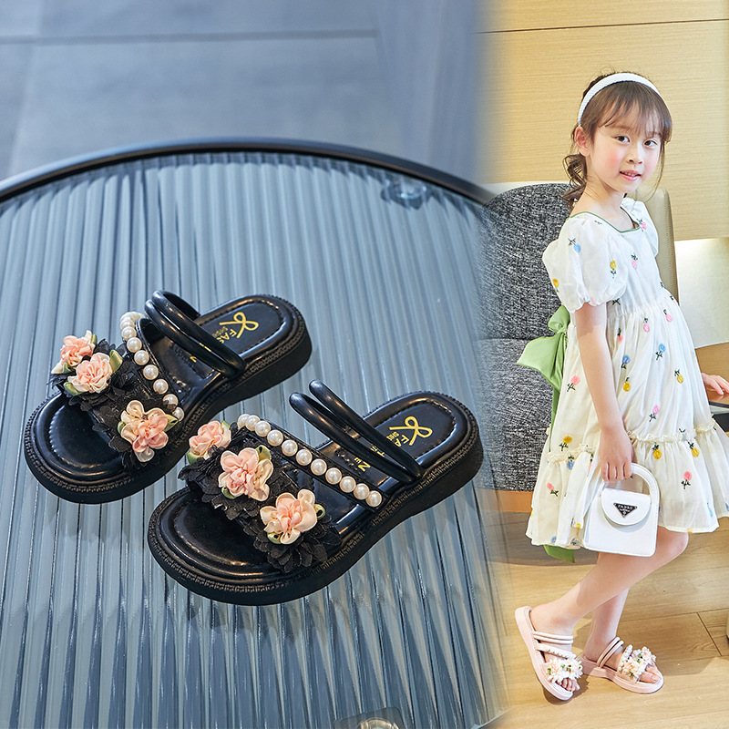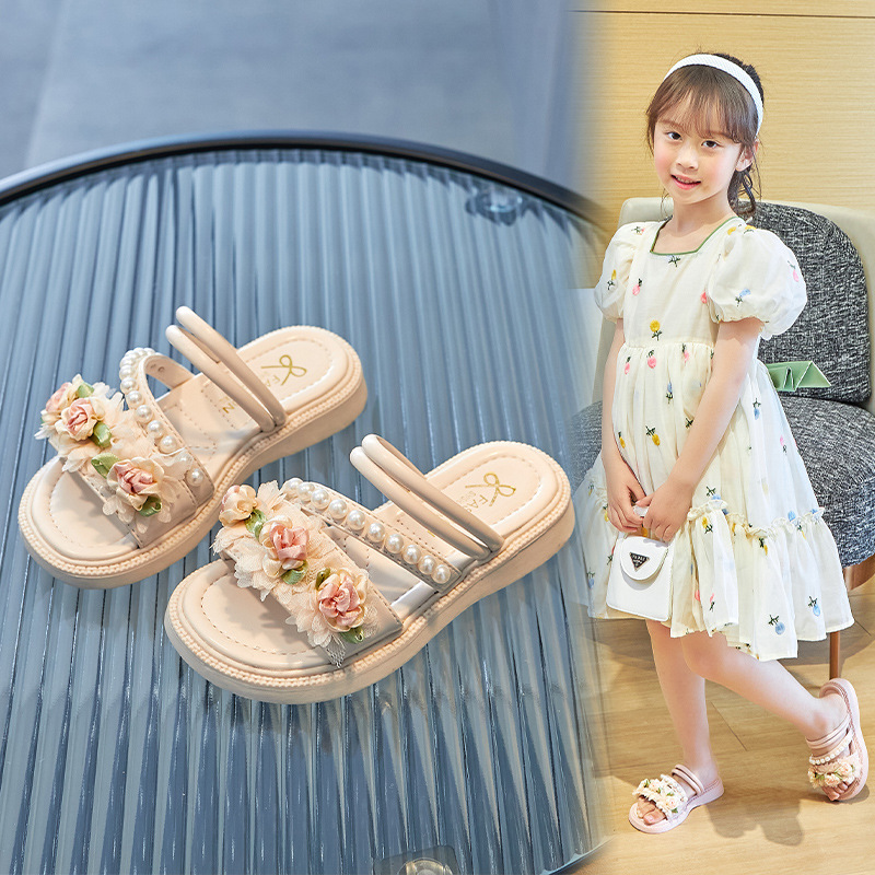 Girls Children's Slippers Summer Korean Version Girls Bow Children's Shoes Student With Diamond Soft Bottom Princess Shoes Fashion