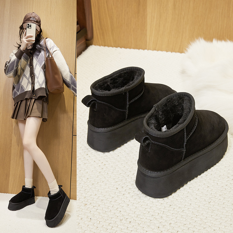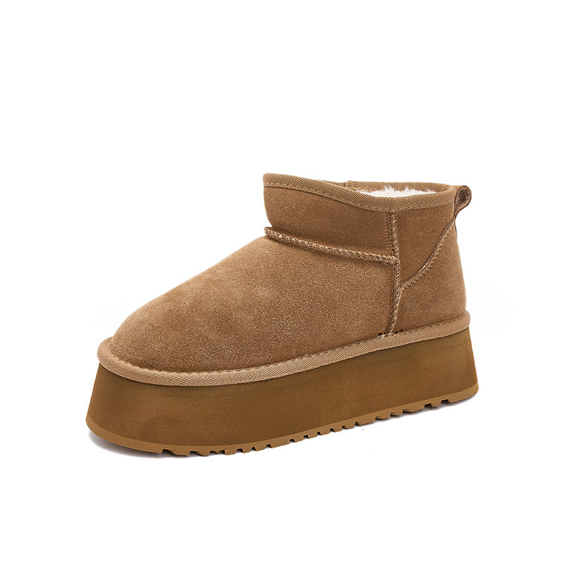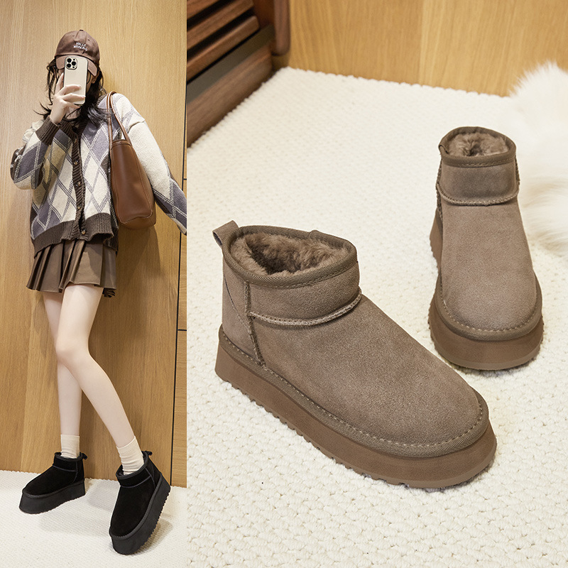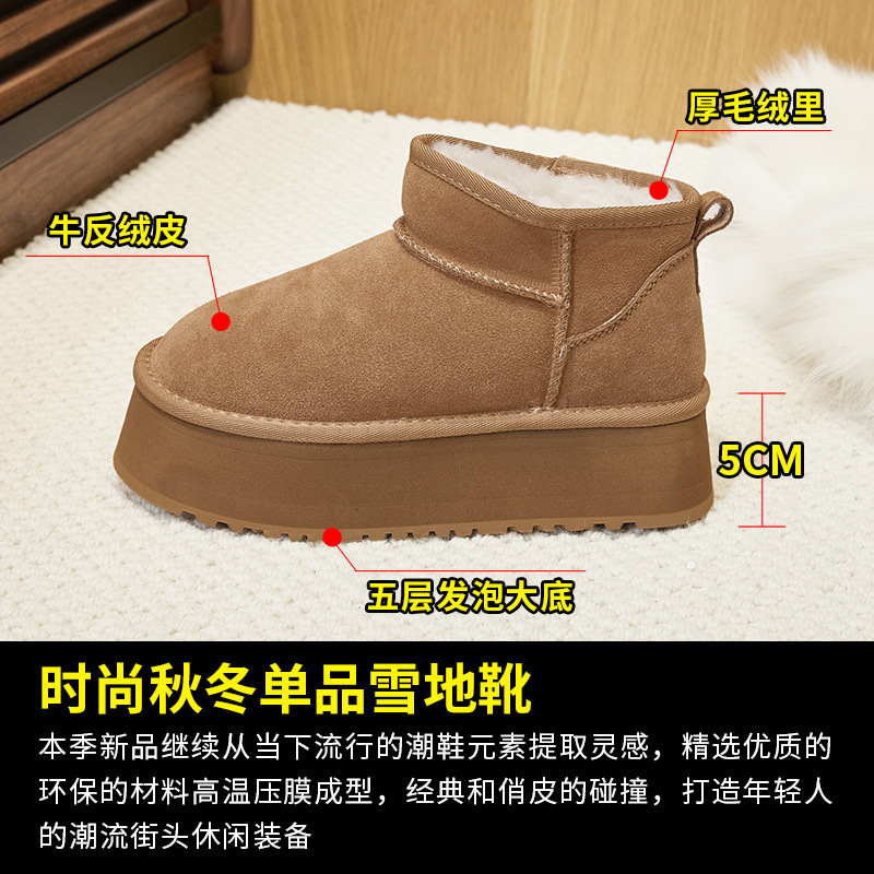 Genuine Leather Five-layer Foam Thick-soled Snow Boots For Women Velvet Thickened Warm Cotton Shoes For Women To Increase Height In Winter