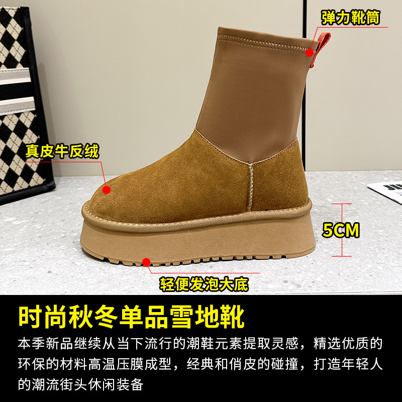 Thick-soled Genuine Leather Snow Boots Women's Elastic Pencil Boots Winter Women's Fashion Student Shoesy Women