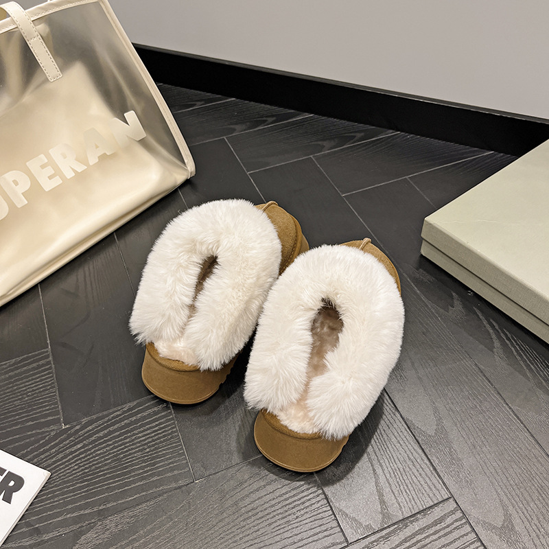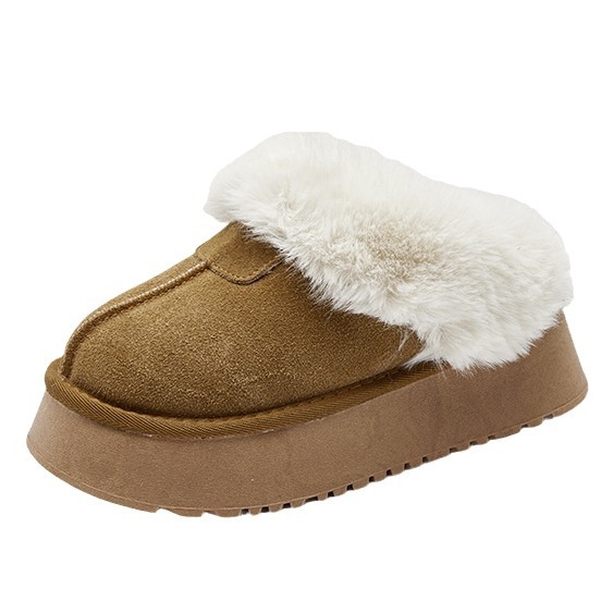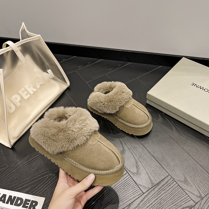 Genuine Leather And Furry Slippers For Women's Outer Wear Baotou Thick-soled Snow Boots Non-slip Flat-soled Half-slip Cotton Shoes