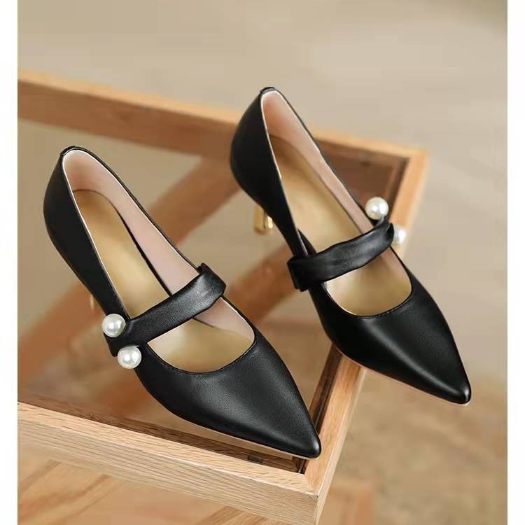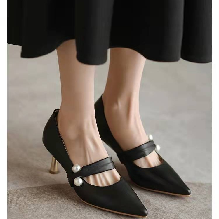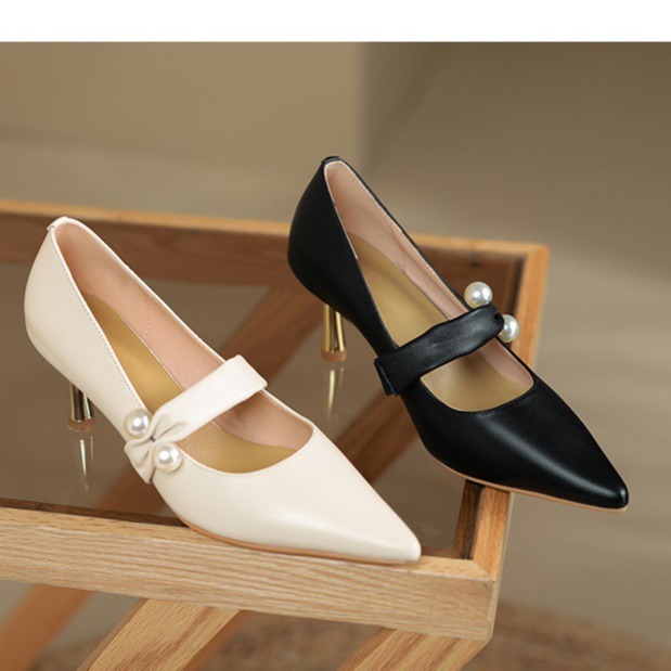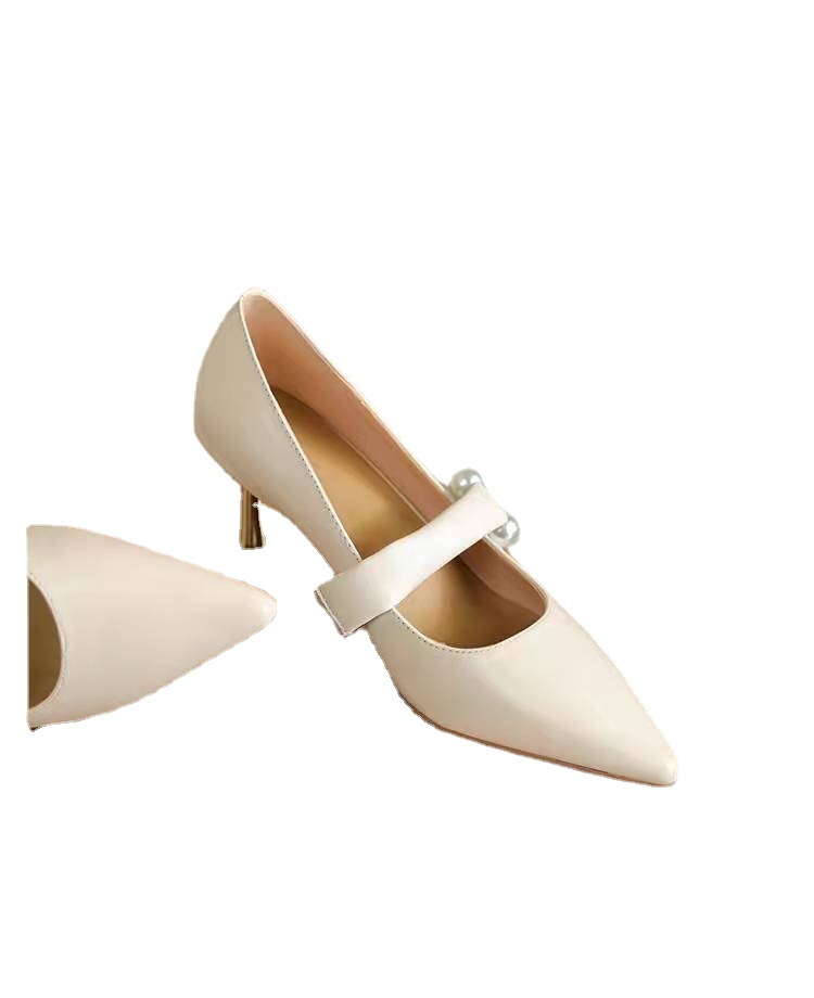 Fairy White French High Heels Women's Pointed Toe Spring And Autumn Wedding Shoes Niche High-end Pearl Single Shoes Small Heel