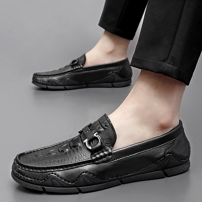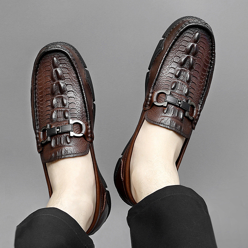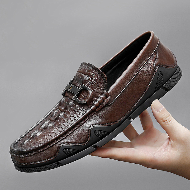 One-step Octopus Loafers,y Best-selling Beanie Shoes,Genuine Leather Crocodile Pattern Men's Shoes,Business Casual Leather Shoes