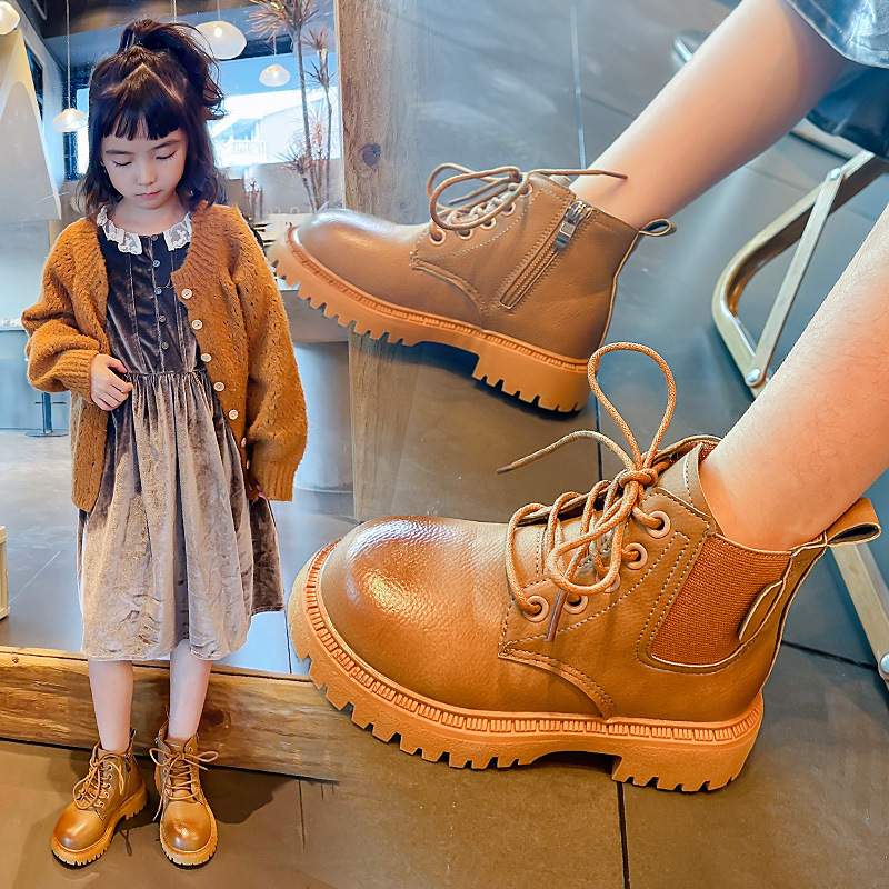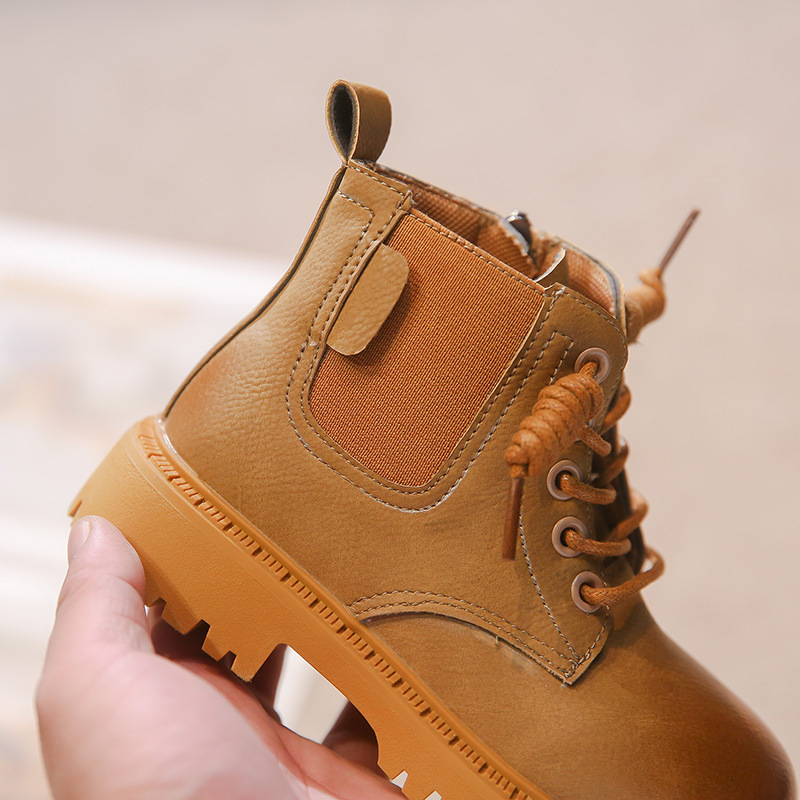 Children's Martin Boots Autumn And Winter Style Small Leather Boots Plus Velvet To Keep Warm Boys'Fashion Boots Medium And Large Children's Short Boots For Girls