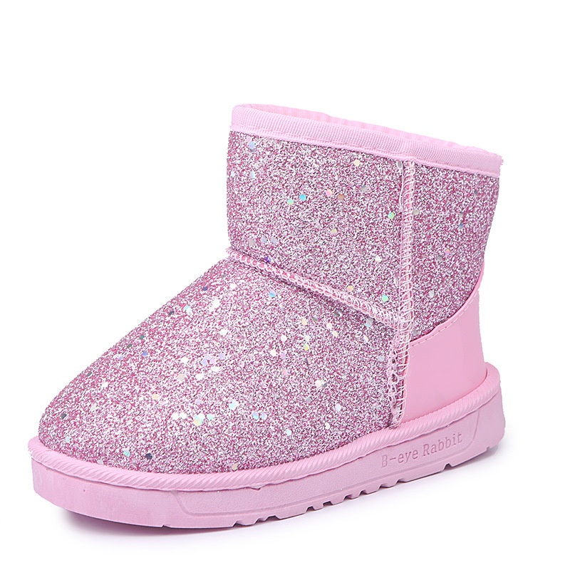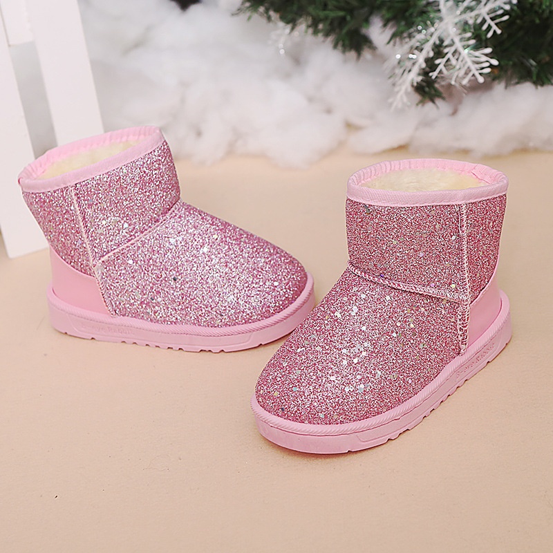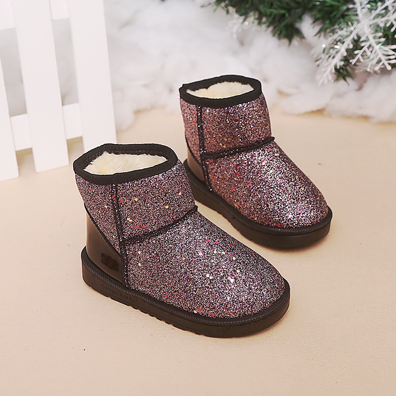 Winter Snow Boots Sequined Thick Sole Non-slip Wear-resistant Children's Shoes Plus Velvet Comfortable Warm Plus Velvet Cotton Shoes