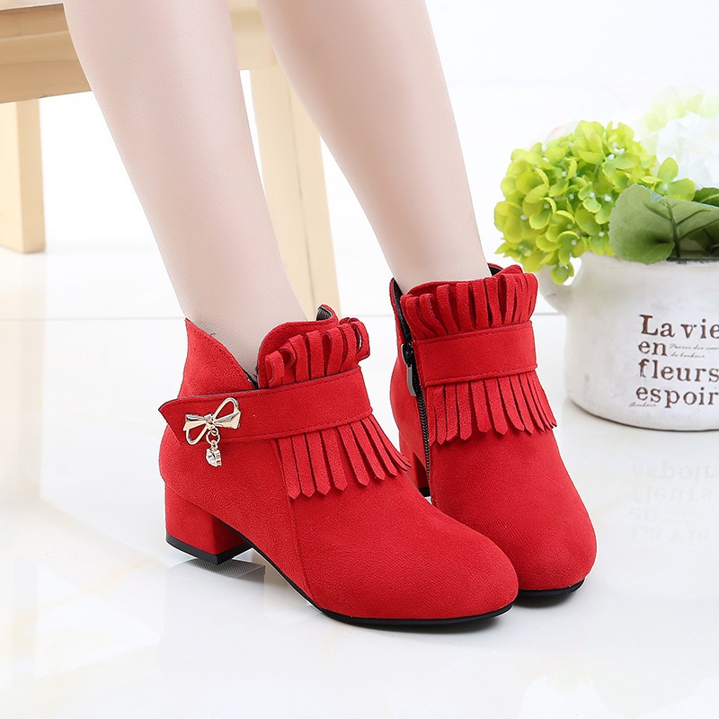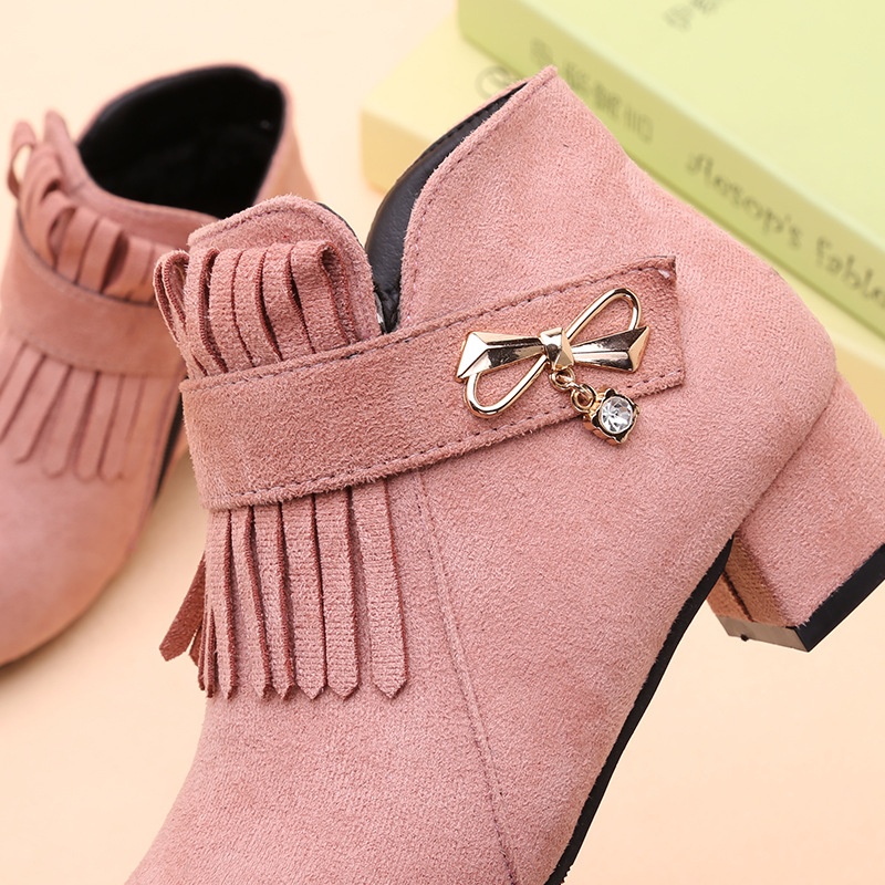 Children's Shoes Girls Boots Autumn And Winter Models For Middle And Large Children High Heels Korean Version Princess Single Boots Baby Plus Velvet Short Boots