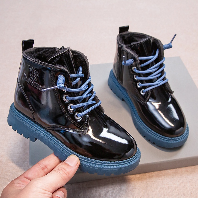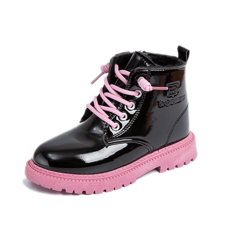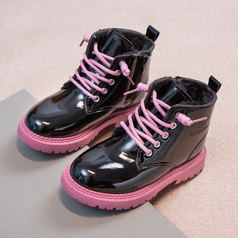 Girls'Shoes Spring And Autumn Short Boots Winter Martin Leather Boots Children's Velvet Thickened British Fashion Shoes