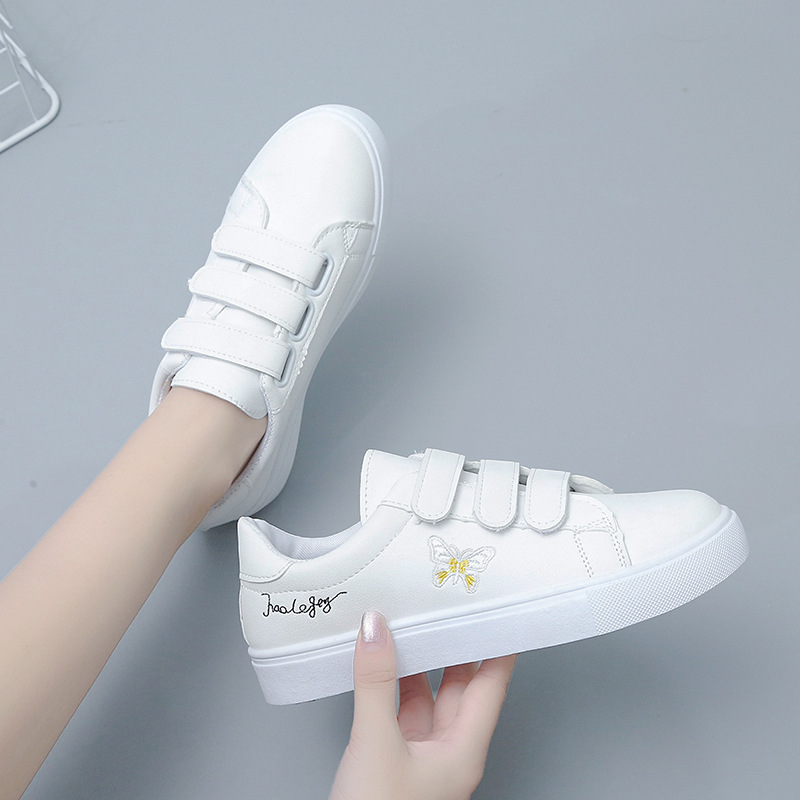 Velcro White Shoes For Women Style Fashionable Breathable Sneakers Flat White Shoes Street Shooting Versatile Women's Shoes