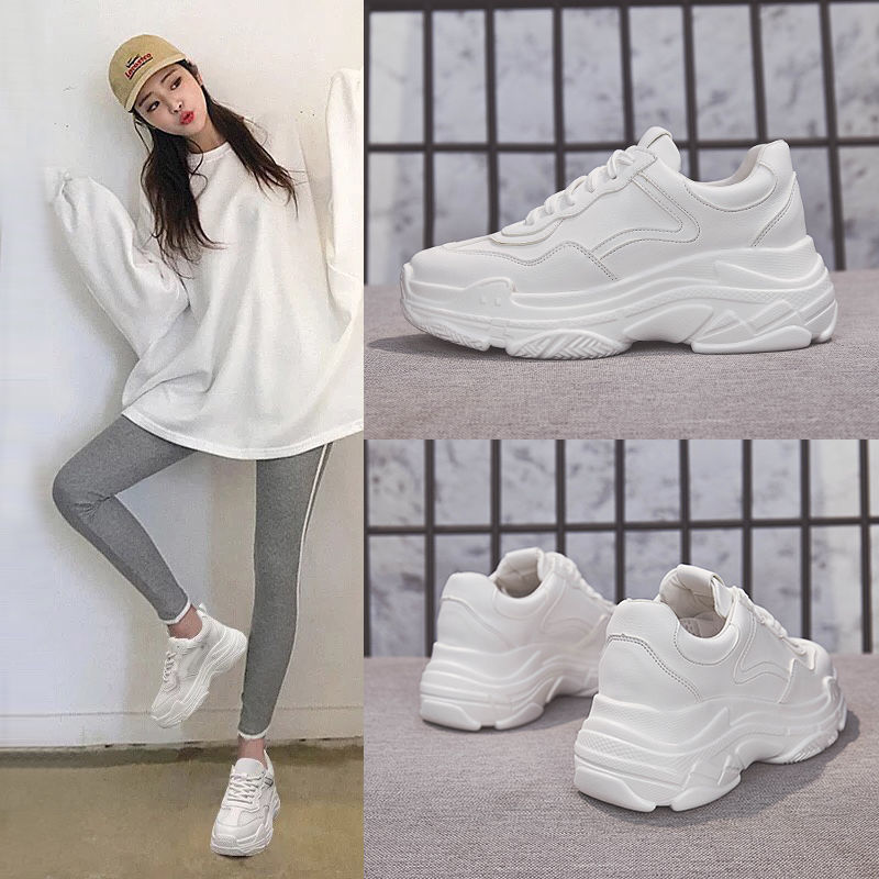 Autumn Dad Shoes Thick-soled Sports Shoes For Women Korean Version Ulzzang Harajuku Height Increasing Student White Shoes