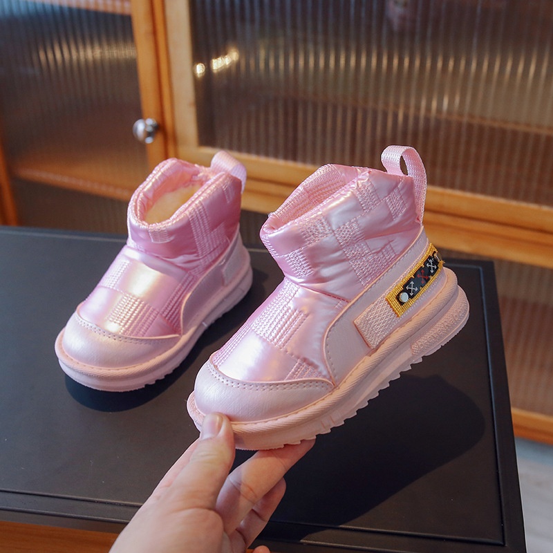 Plaid Children's Snow Boots Winter Velvet Thickened Cotton Boots For Middle-aged And Older Children,Boys And Girls,Bread Boots