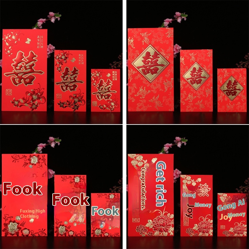 Thickened Hard Paper Yongji Red Envelope Double Color Hot Stamping One Hundred Yuan One Thousand Yuan Ten Thousand Yuan Wedding Happy Word Red Envelope Bag Housewarming Red Envelope