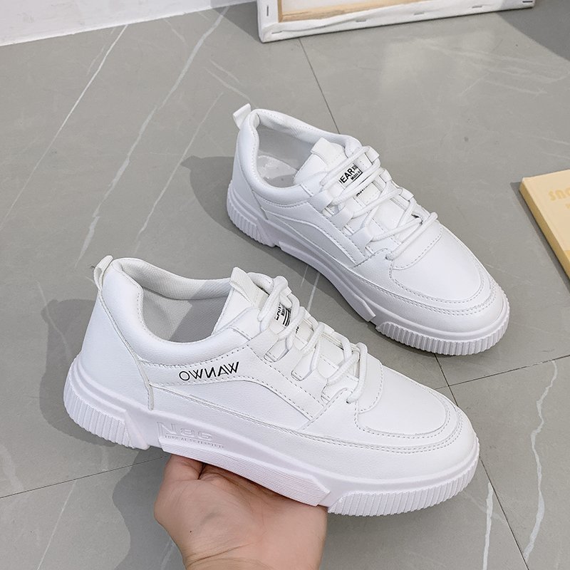Shoes For Women Spring White Shoes For Female Students Korean Version Lightweight Harajuku Style Leather Sports Flat Shoes