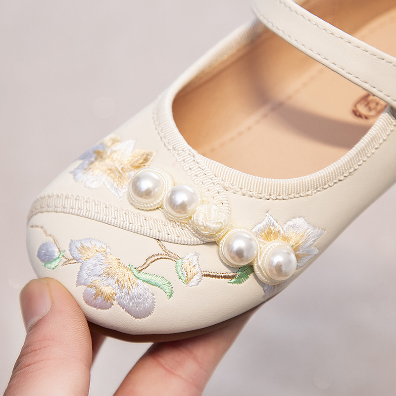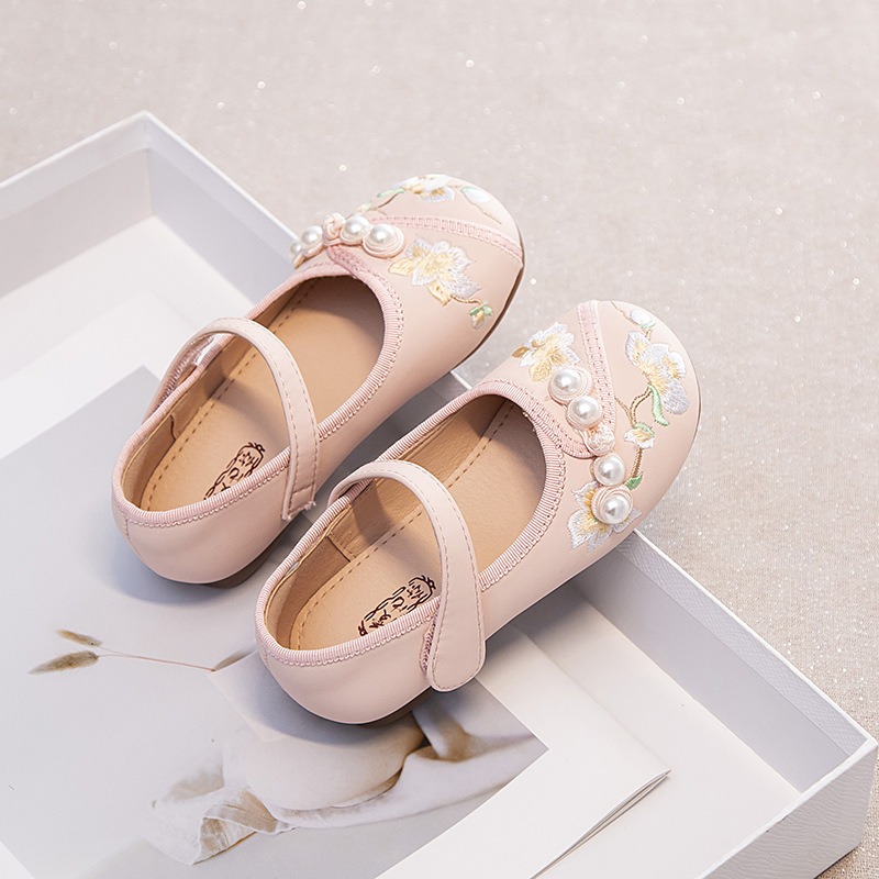 Girls'Hanfu Shoes,Winter Children's Leather Shoes,Autumn And Winter Baby Costume Shoes,Single Shoes,Antique Embroidered Shoes
