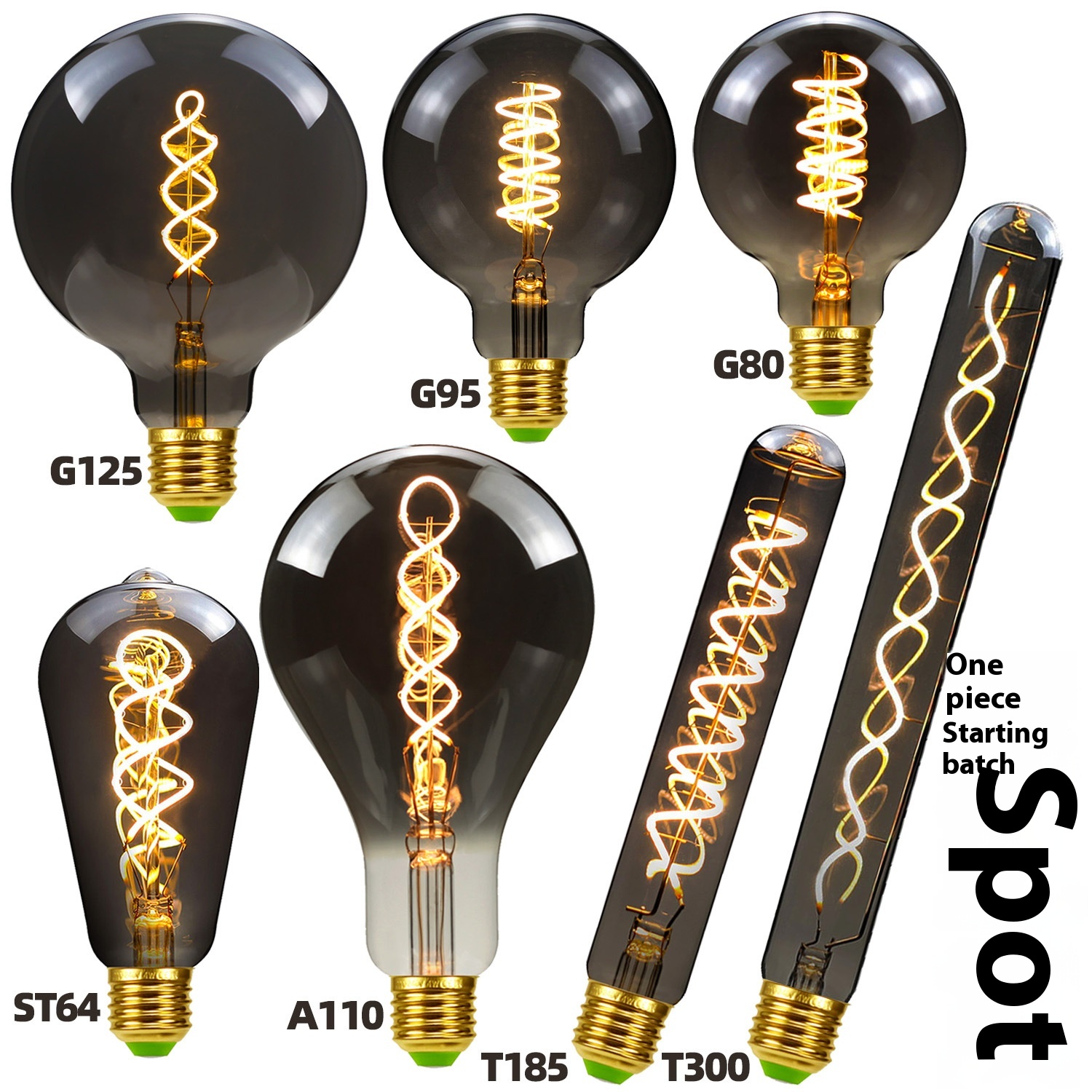 Edison Bulb LEDLamp Electroplating Smoke Gray Warm Light E27 Lighting Lighting ST64 G80 G95 Retro Lamp
