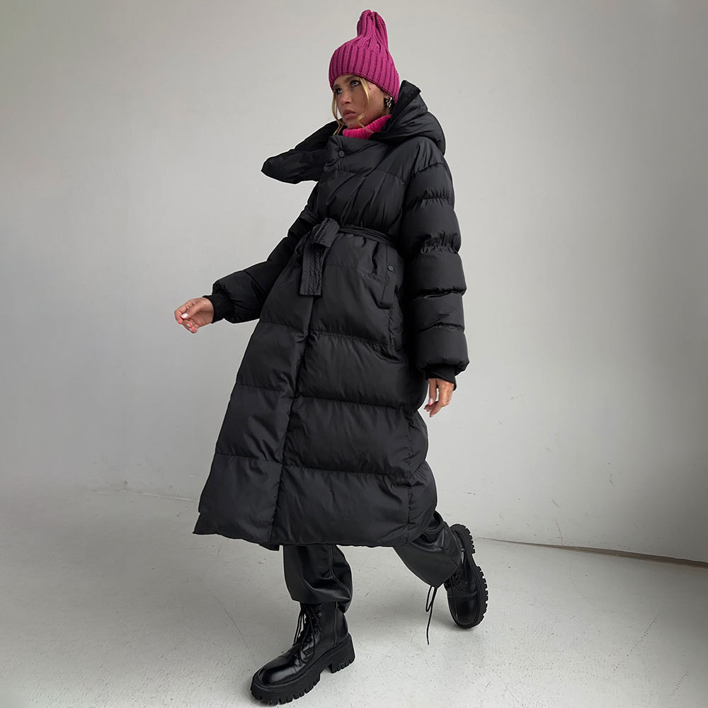 Autumn And Winter Foreign Trade Women's Long Cotton Jacket Casual Style Warmth Thick Hidden Button Long Hooded Cotton Jacket