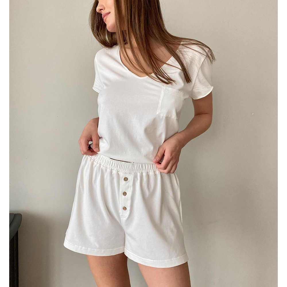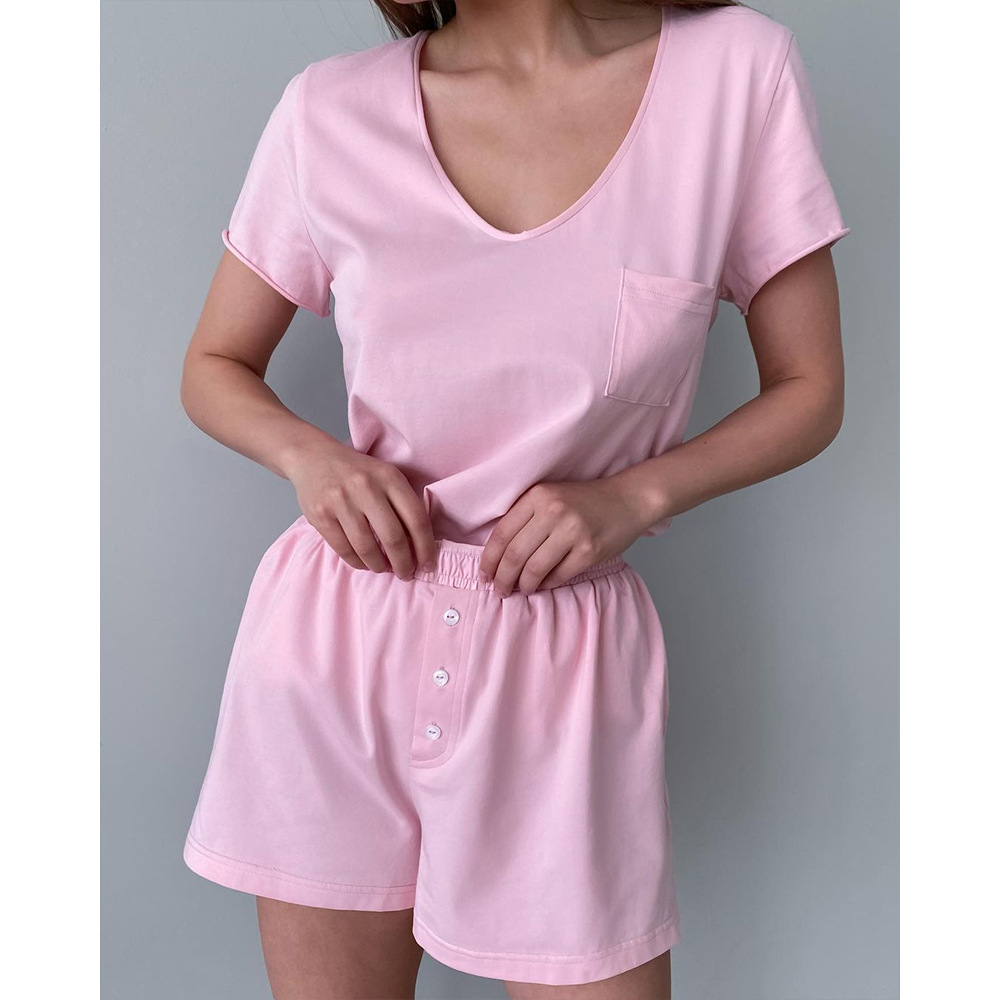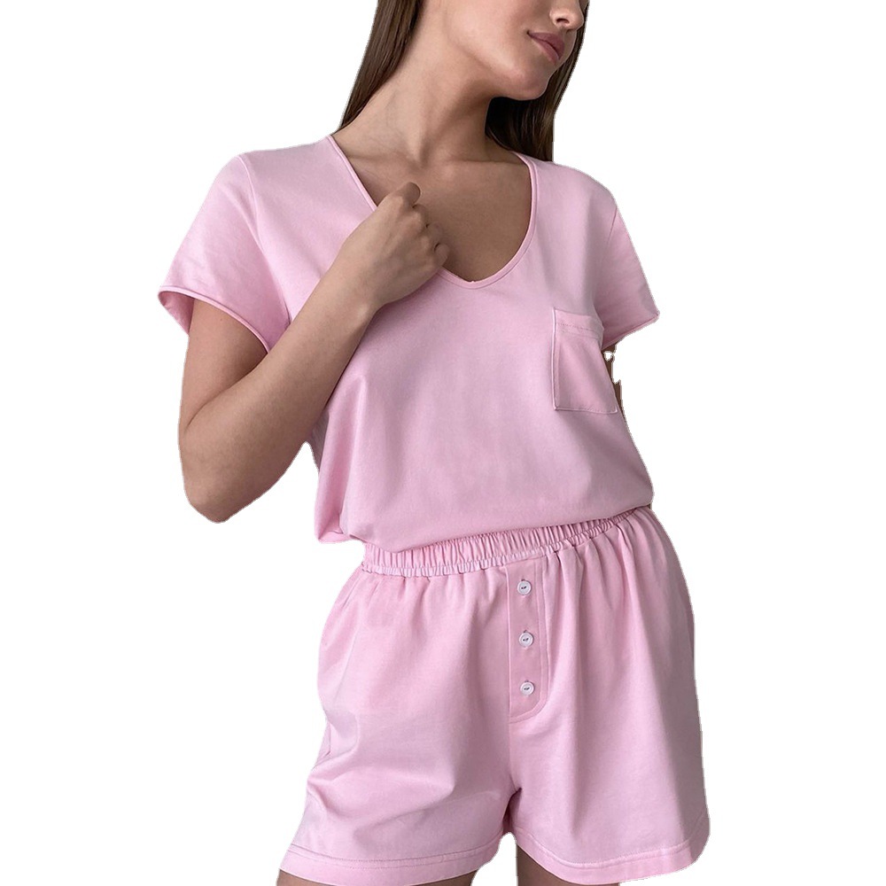 V-neck Shorts Pajamas Suit Europe And America Spring And Summer Casual Loose And Comfortable Cotton Short-sleeved T-shirt Suit