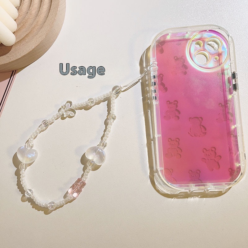 Korean Style Pink Bow Crystal Chain Lanyard Universal Mobile Phone Case Camera Keychain Earphone Case Pendant For Women