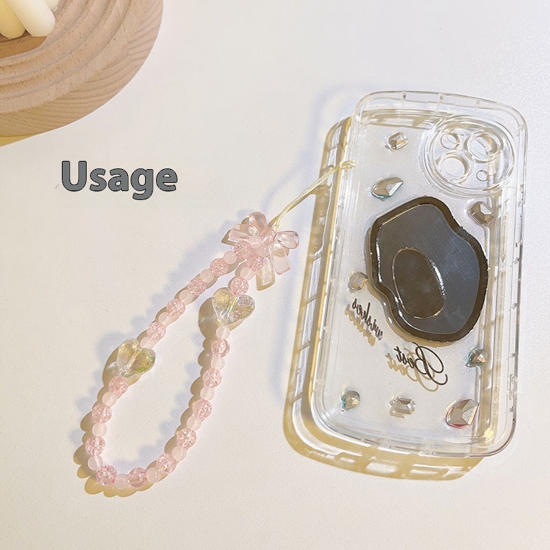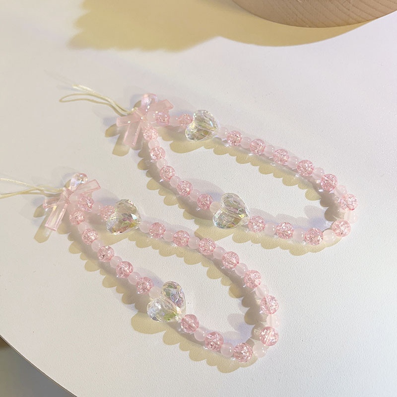 Japanese And Korean Pink Beads Love Mobile Phone Chain Universal All Mobile Phone Cases Ccd Lanyard Portable Headphone Set Hanging Chain Bracelet