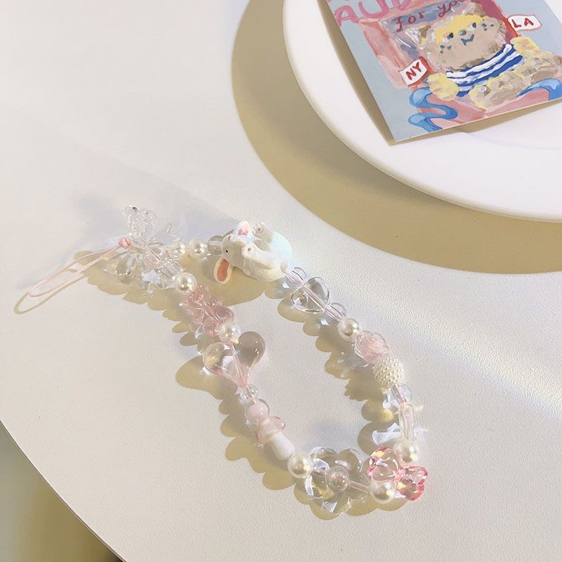 Girly Heart Rabbit Bead Bracelet Universal Mobile Phone Case Pendant Camera CCDKeychain Female Mobile Phone Lanyard