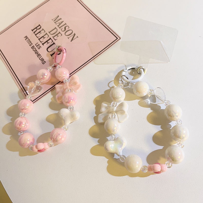 YSolid Color Love Bow Bead Lanyard Universal Mobile Phone Case Diy Camera CCDKeychain Bracelet